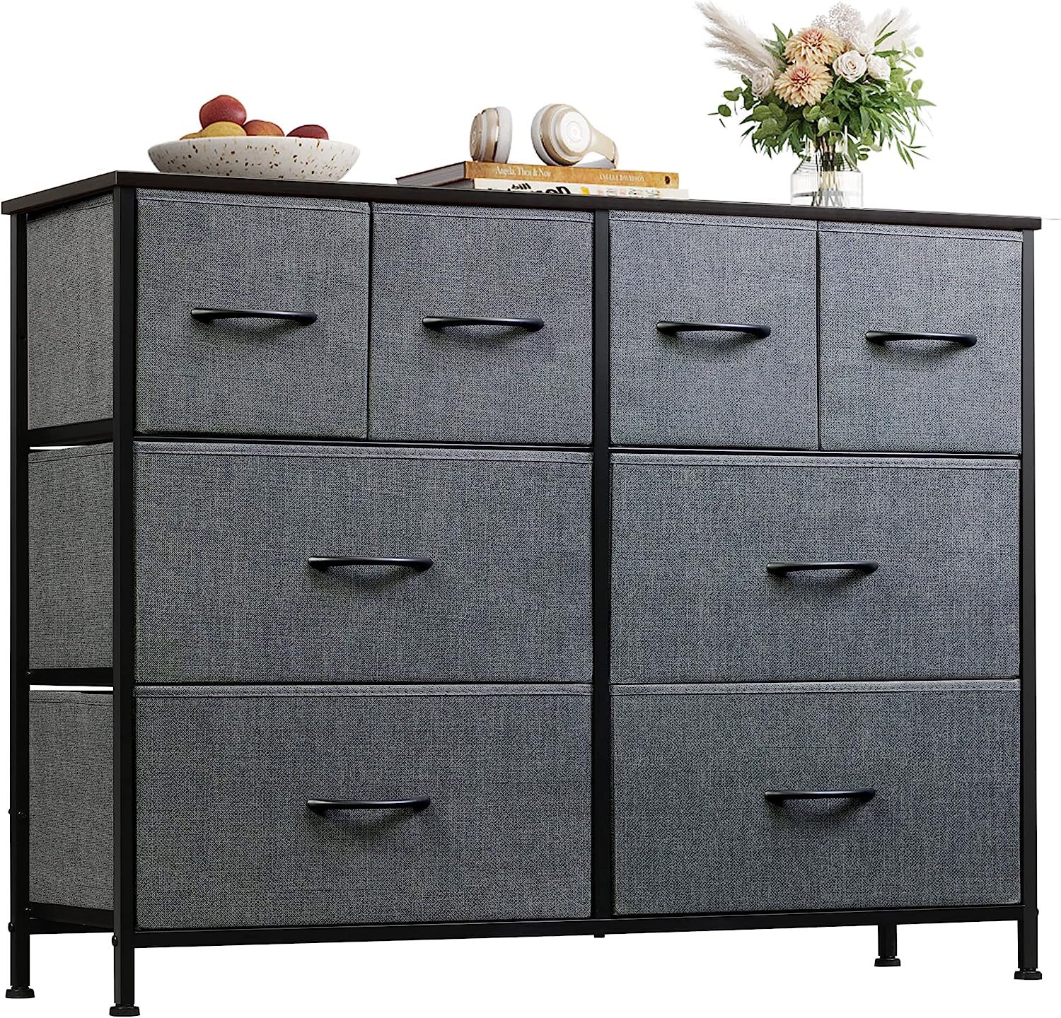 NEW - WLIVE Dresser for Bedroom with 8 Drawers, Wide Fabric Dresser for Storage and Organization, Bedroom Dresser, Chest of Drawers for Living Room, Closet, Hallway, Dark Grey - Retail $94