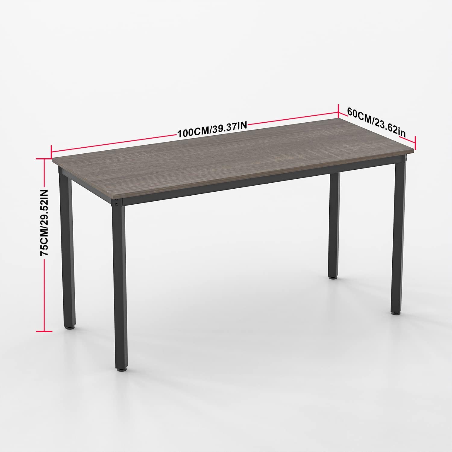 - Simple Design Computer Desk: This sturdy desk designed in elegance.Designed with a thick MDF & 3D PVC tabletop, a waterproof wood grain finish and metal legs. Very easy to maintain and clean. Dimension: 39.37“x 23.62". Desk Height: 29.52".