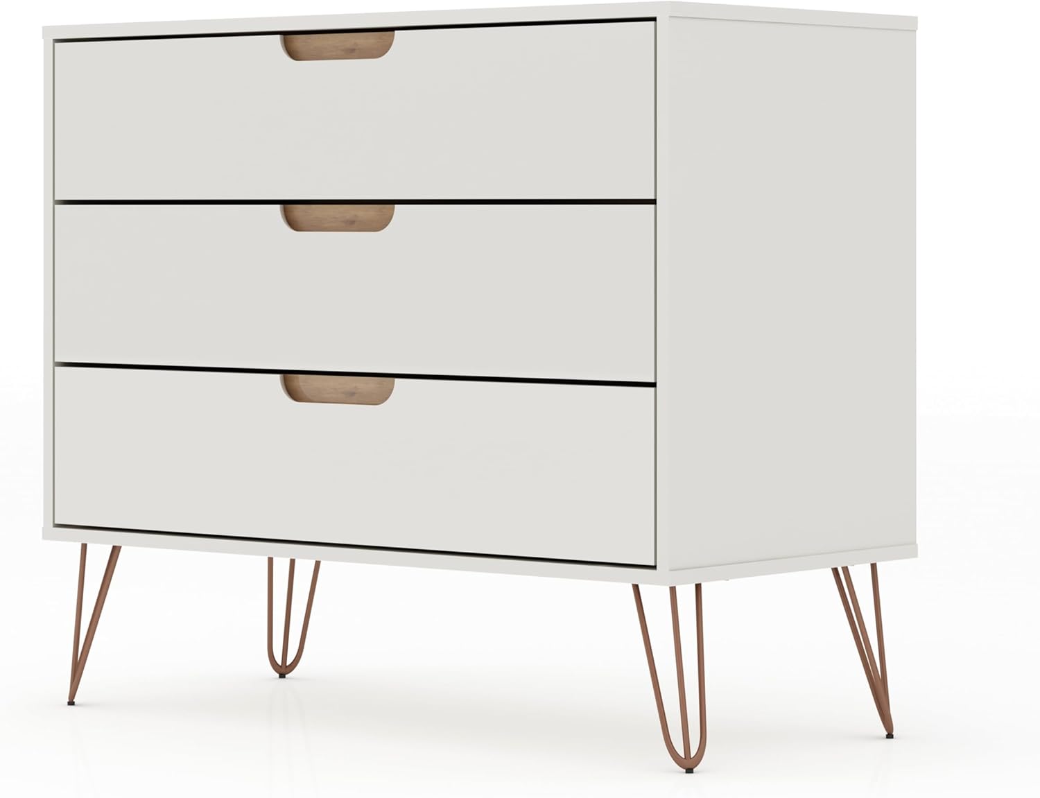 NEW - Manhattan Comfort Rockefeller Mid-Century Modern 3-Drawer Bedroom Dresser, Natural, Off-White Finish - Retail $192