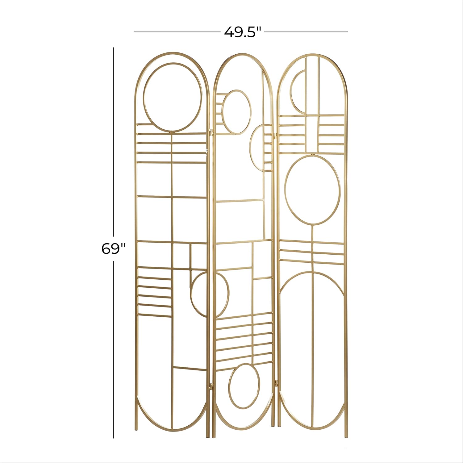 - GEOMETRIC OVAL ROOM DIVIDER SCREEN Metal room divider screen features three panels, providing ample coverage and creating depth in your home