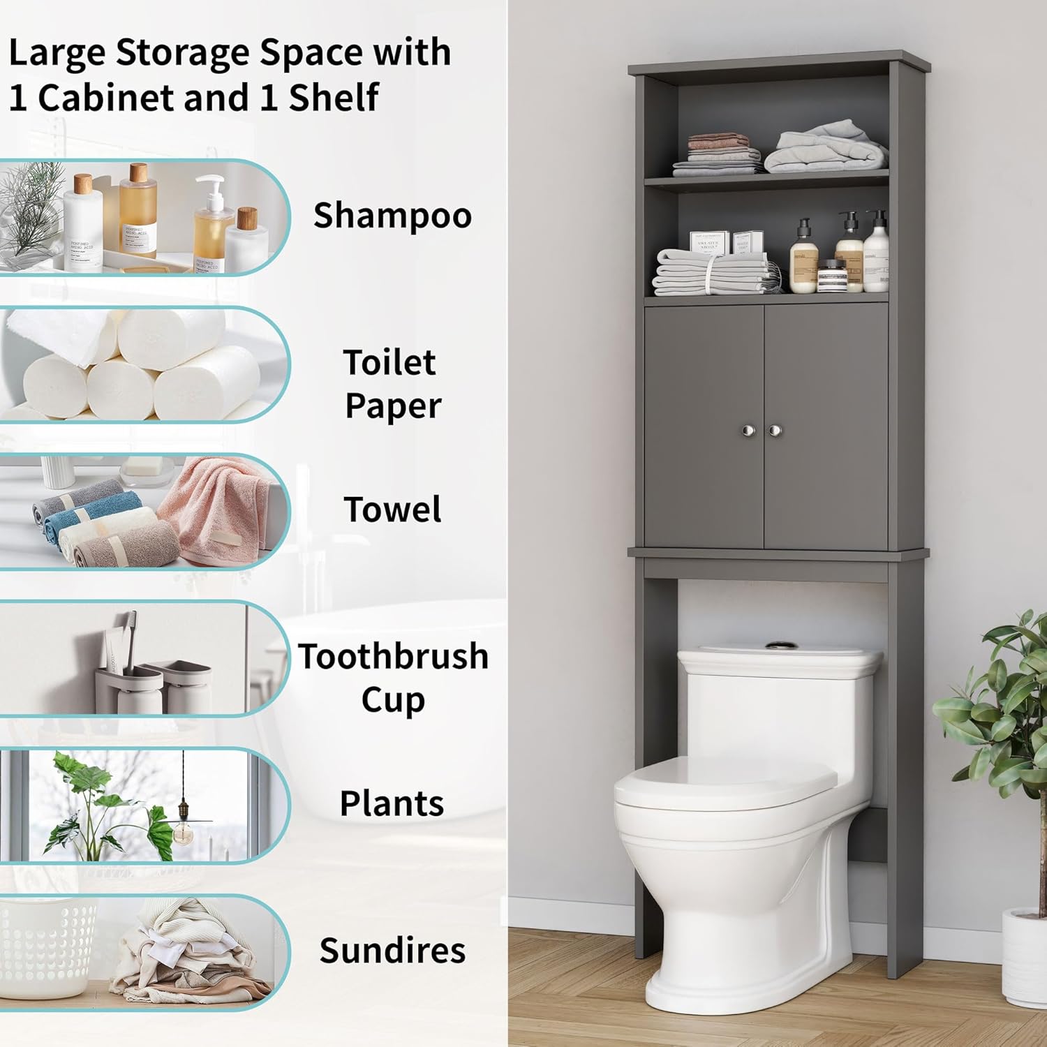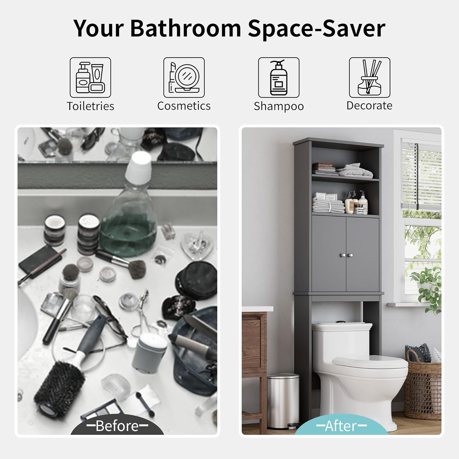 - Bring A Tidy Bathroom: Comes with 2 open shelf and 1 cabinet with doors, the organeizer will bring you more storage options to store your various bathroom supplies without taking up too much space