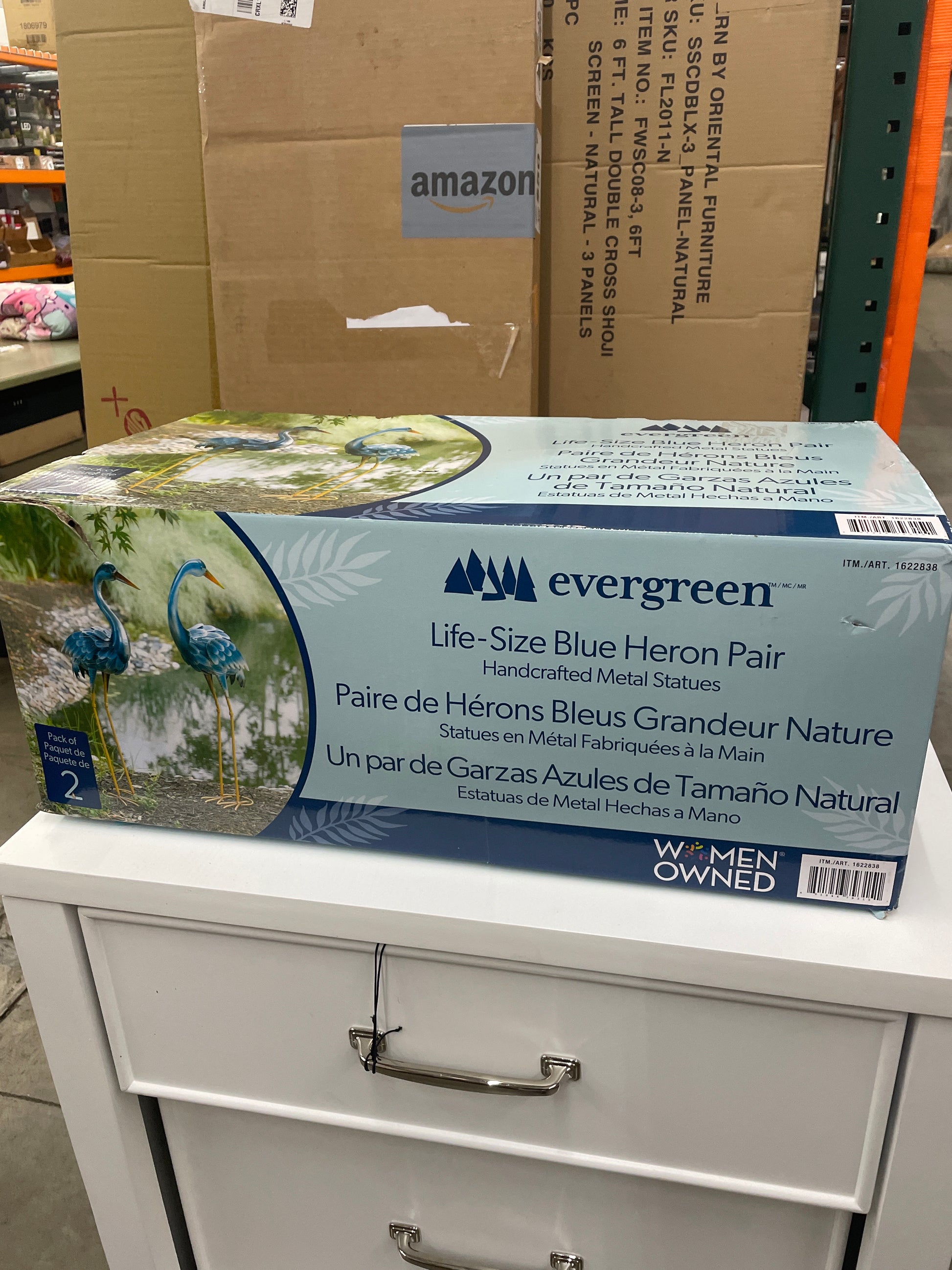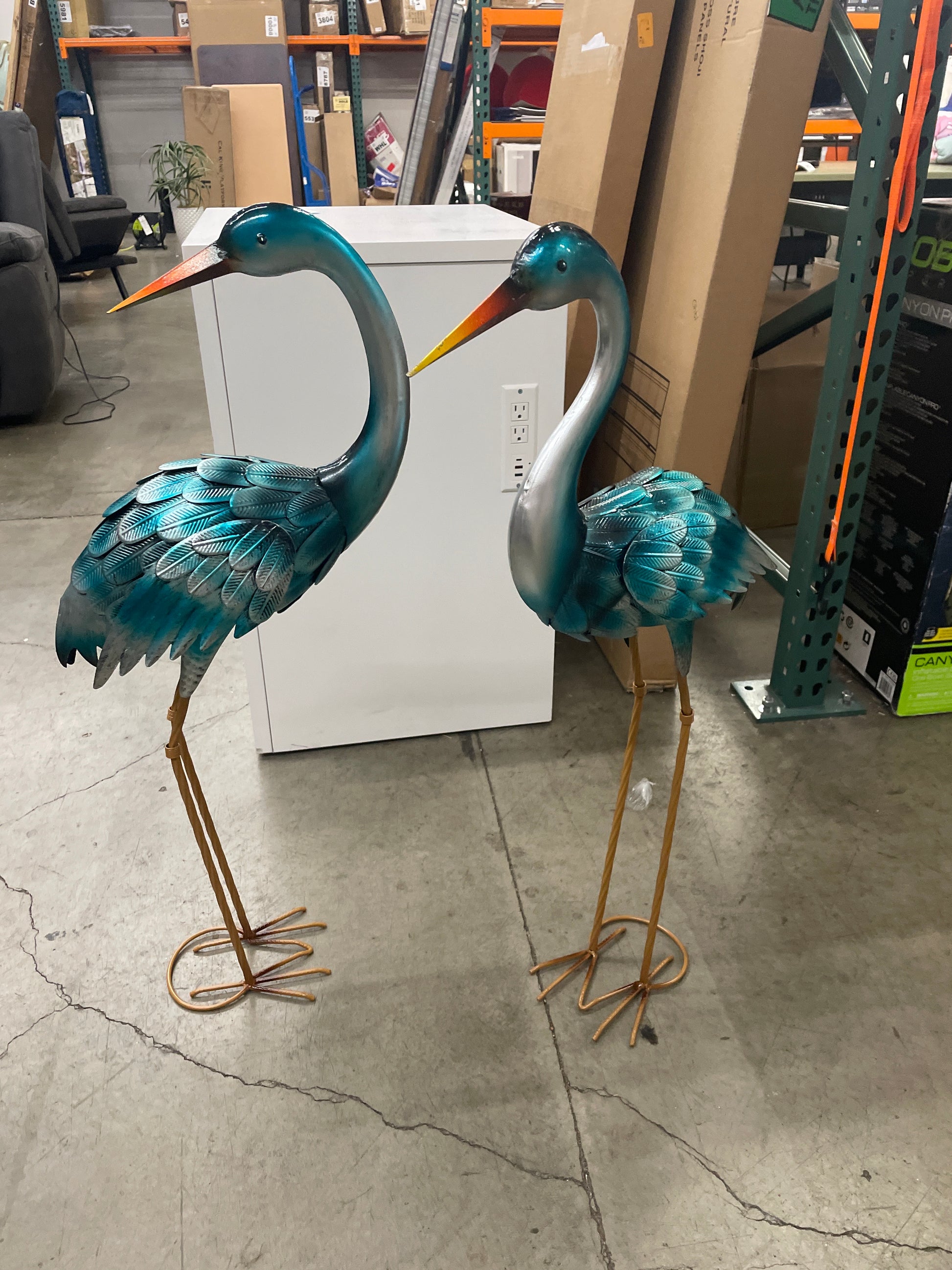 - 35” Blue Heron Statue Pair All-metal Construction, Crafted From Steel