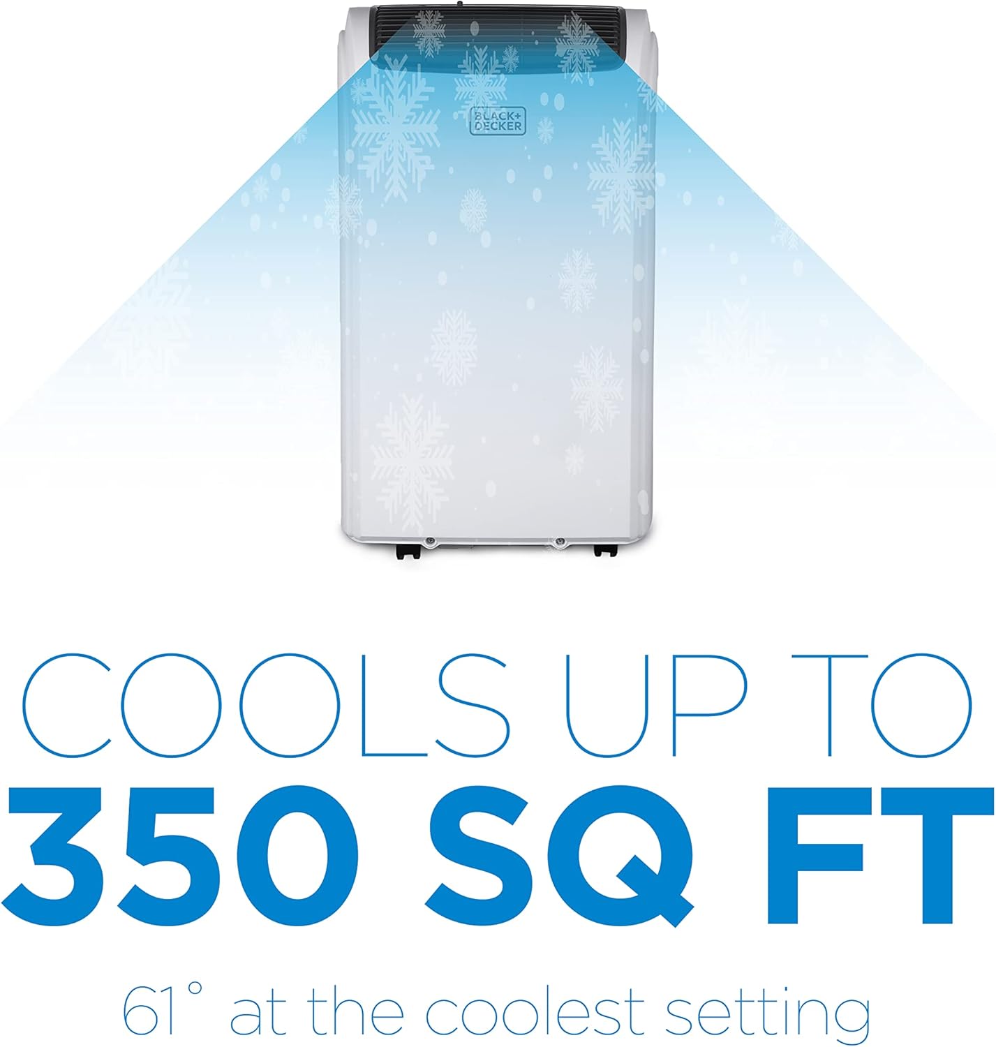 - Portable AC: Use this personal air conditioner (15.3” x 14” x 24.8”) in rooms up to 350 sq. ft. Stay cool in the hot summer months and sleep well with this BLACK+DECKER ac unit for bedroom..Frequency: 60 hertz