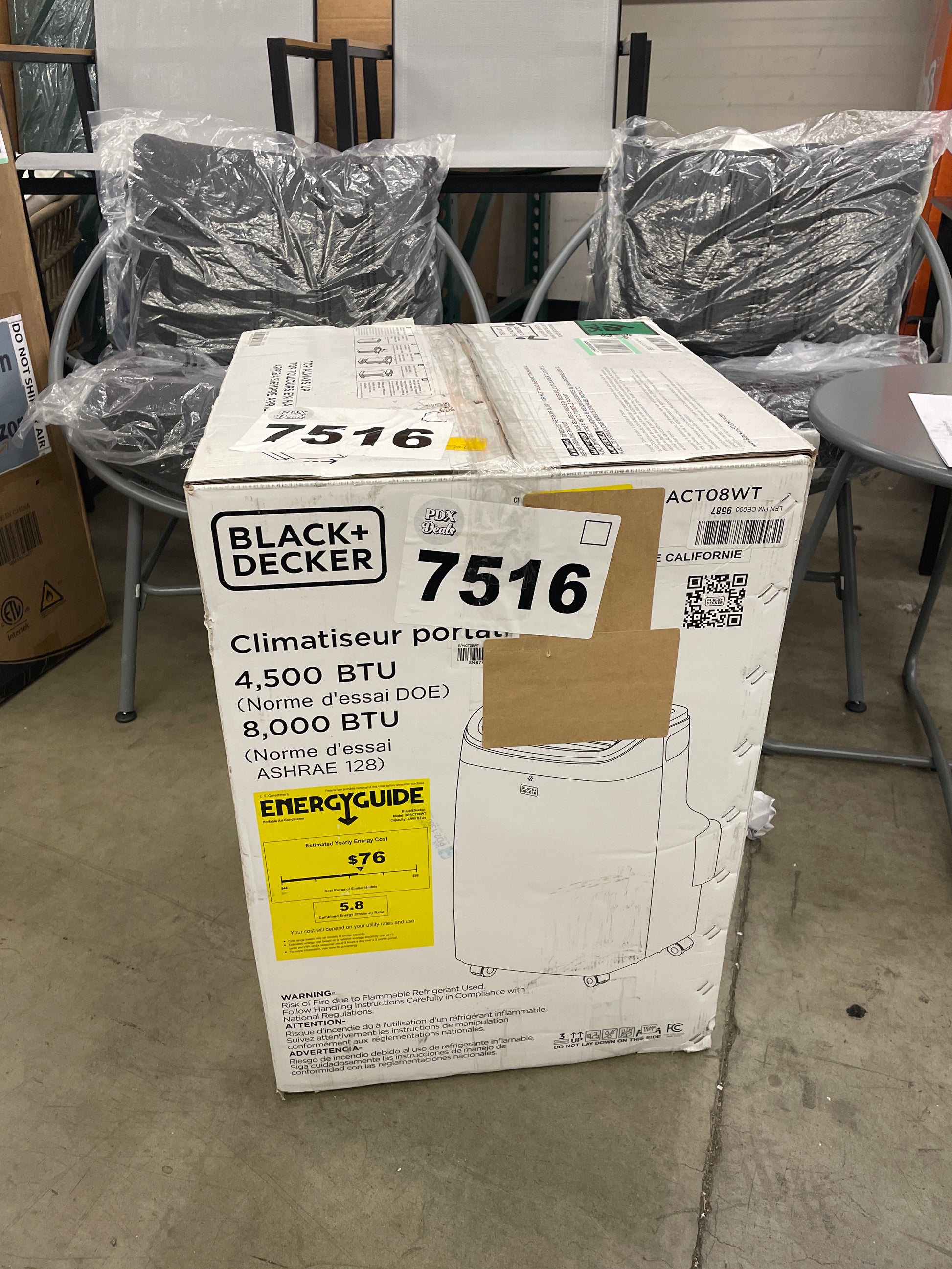 BLACK+DECKER 8,000 BTU Portable Air Conditioner for Rooms up to 350 Sq. with Remote Control, White