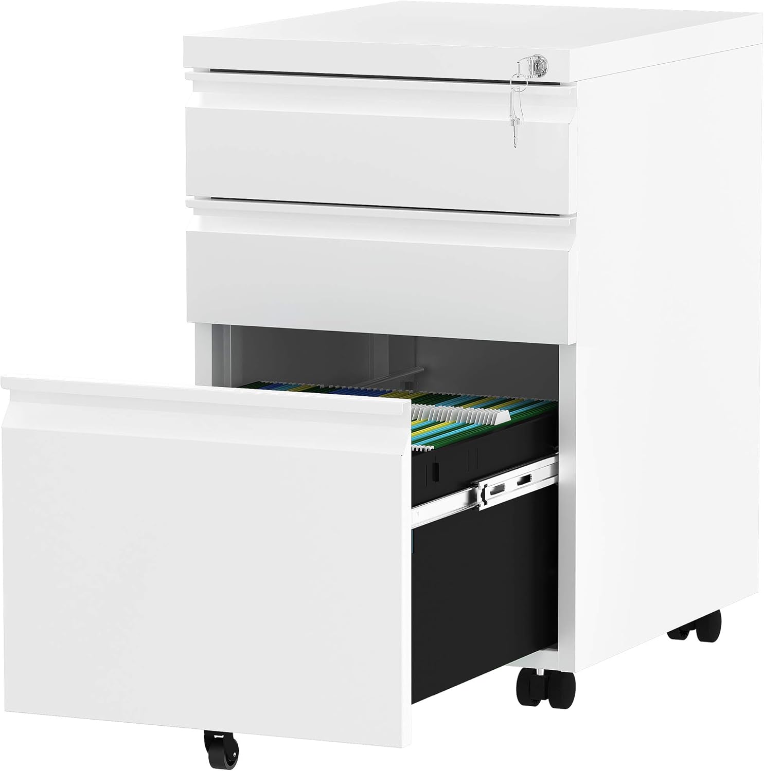 YITAHOME 3-Drawer Mobile File Cabinet with Lock, Office Storage Filing Cabinet for Legal/Letter Size, Pre-Assembled Metal File Cabinet Except Wheels Under Desk -White - Retail $142