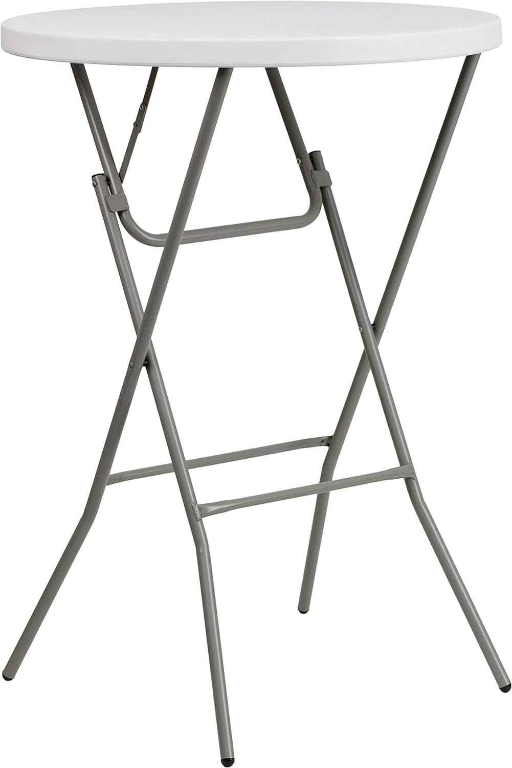 Flash Furniture Elon 2.6-Foot Round Granite White Plastic Bar Height Folding Table, Set of 1 - Retail $76