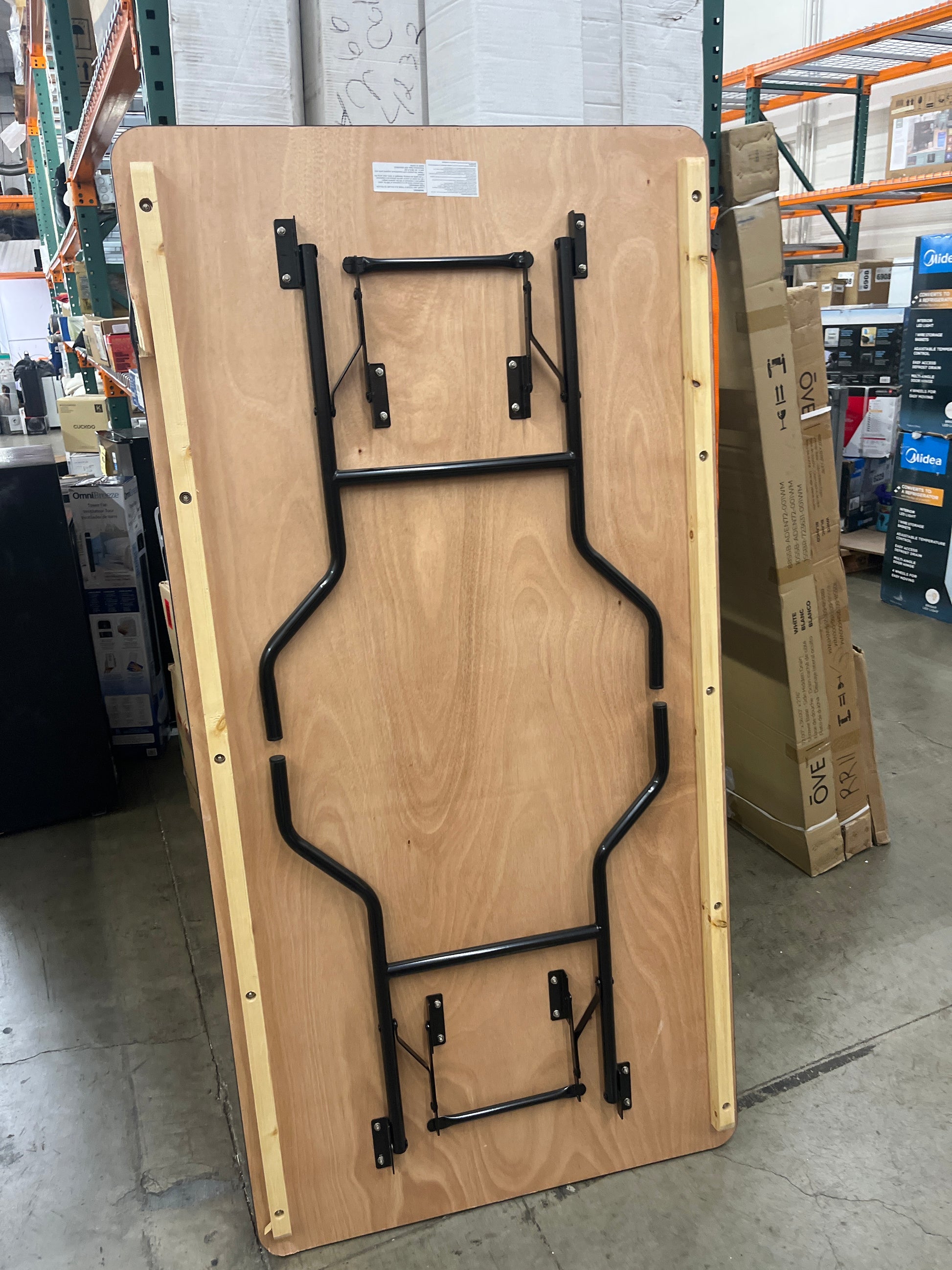 Flash Furniture Fielder 6ft Rectangular All-Occasion Wood Folding Event Table, Foldable Portable Banquet Table with Wooden Top, Natural/Black - Retail $186