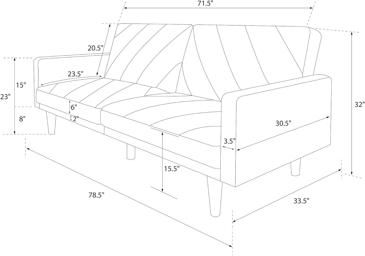 - SMALL SPACE APPROVED: Guest room and home office worthy, this compact split back sofa and small bed fits almost anywhere. Sofa dimensions: 78.5"L x 33.5"W x 32"H. Bed dimensions: 78.5"L x 44"W x 23"H. Net weight: 86 lbs