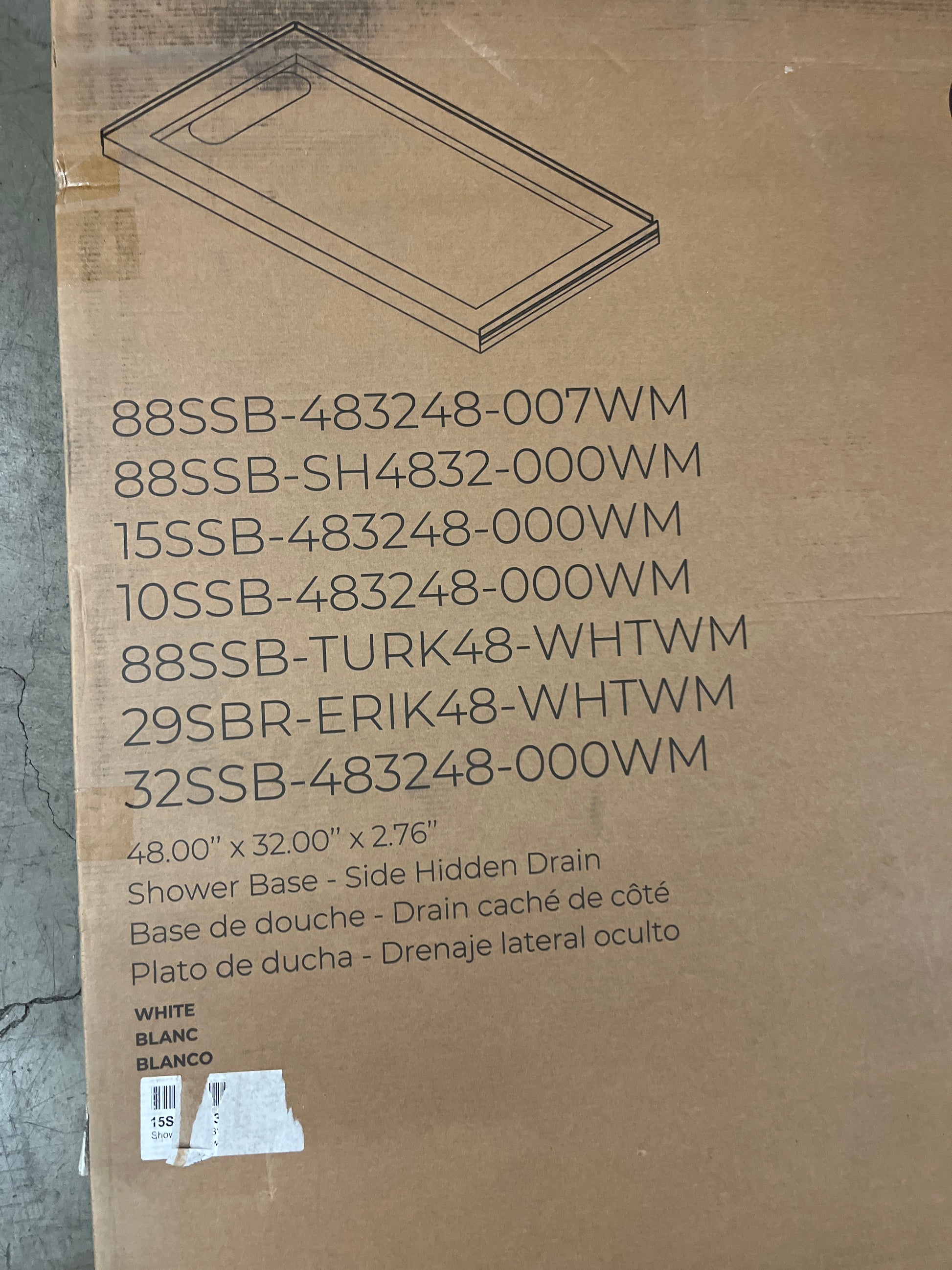NEW - Ove Decors Erika 48" x 32" Shower Base with Reversible Drain - Retail $250