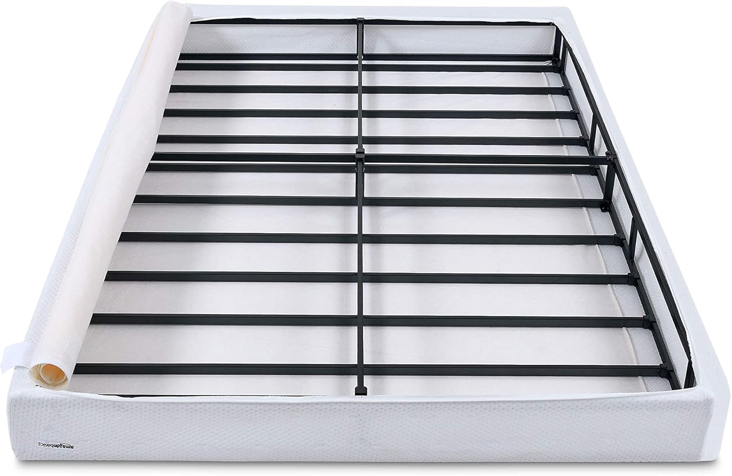 QUEEN Amazon Basics Smart Box Spring Bed Base, 5 Inch Mattress Foundation, Tool-Free Easy Assembly, Queen, White - Retail $116