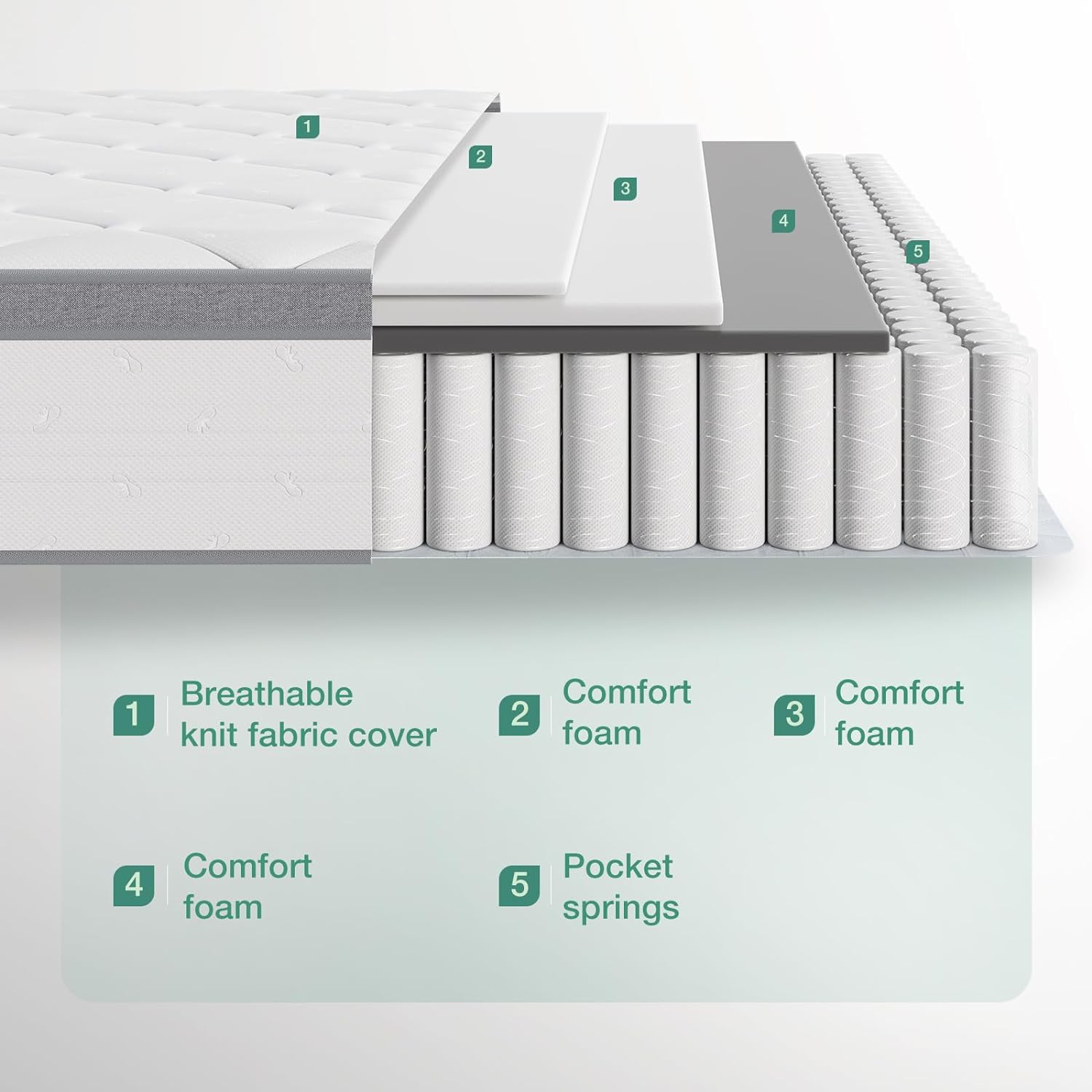 - 【Peaceful night without disturbance】: Pocket coils move independently, absorbing movement and preventing it from spreading across the full spring mattress. The combination of foam and springs provides both support and motion absorption, ensuring that you and your partner can rest peacefully without interruption. Enjoy an undisturbed night's sleep with the full mattress 12 inch.