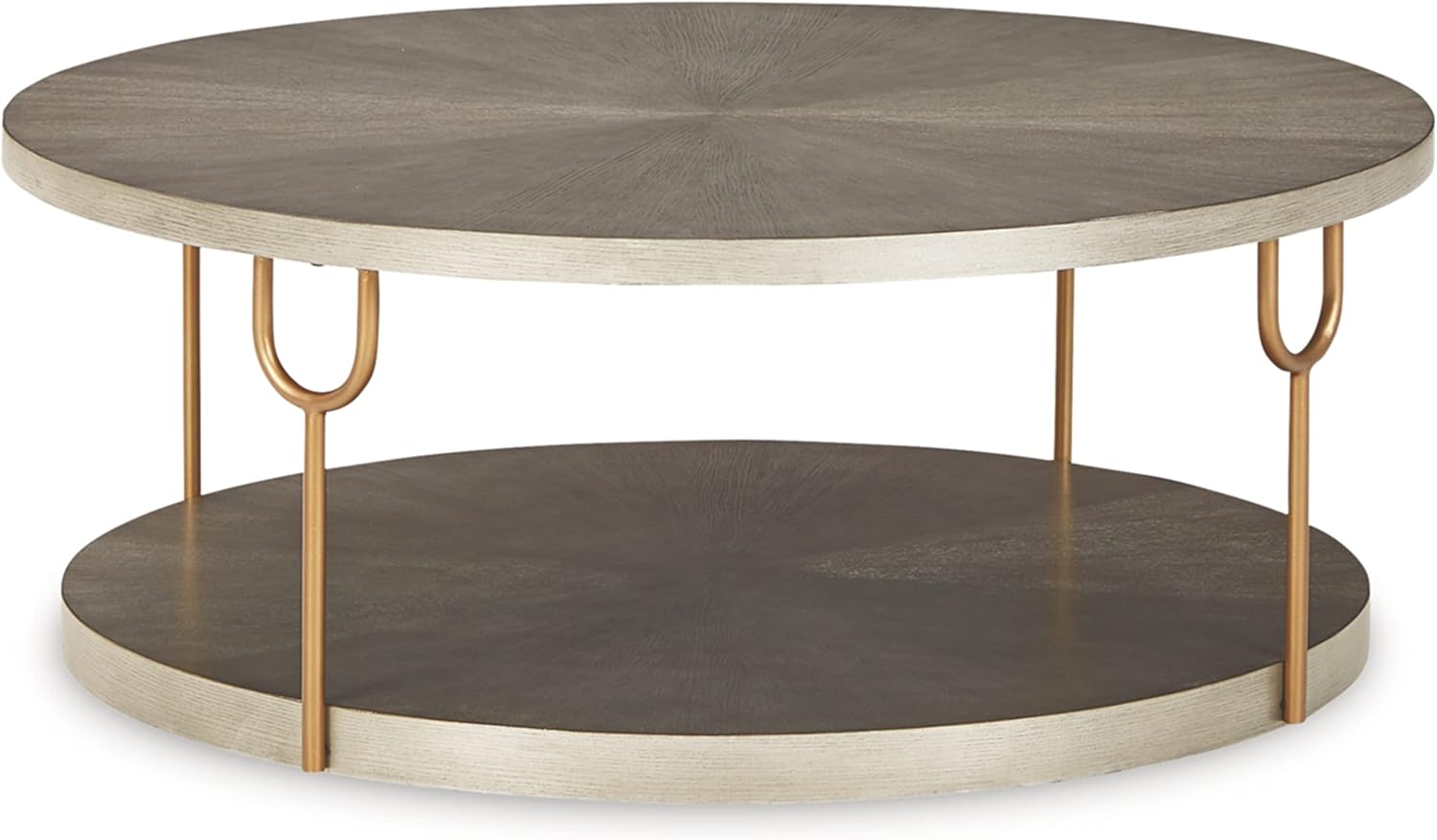 Signature Design by Ashley Ranoka Contemporary Round 42" Coffee Table, Metallic & Goldtone Finish - Retail $199