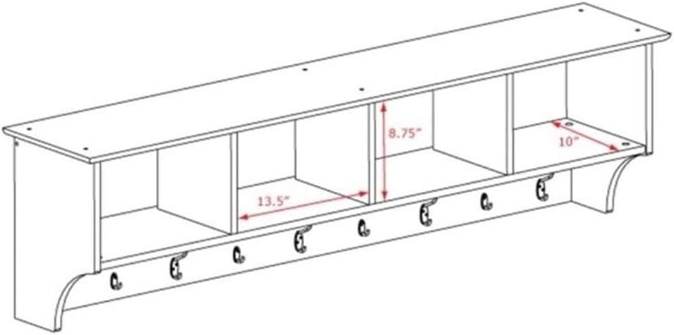 NEW - Prepac Drifted Gray 60" Contemporary Wall Mounted Coat Rack, Coat Hooks Wall Mount with 4 Shelves, Ideal for Hallway or Entryway Storage Solution, 11.5"D x 60"W x 16.5"H - Retail $99