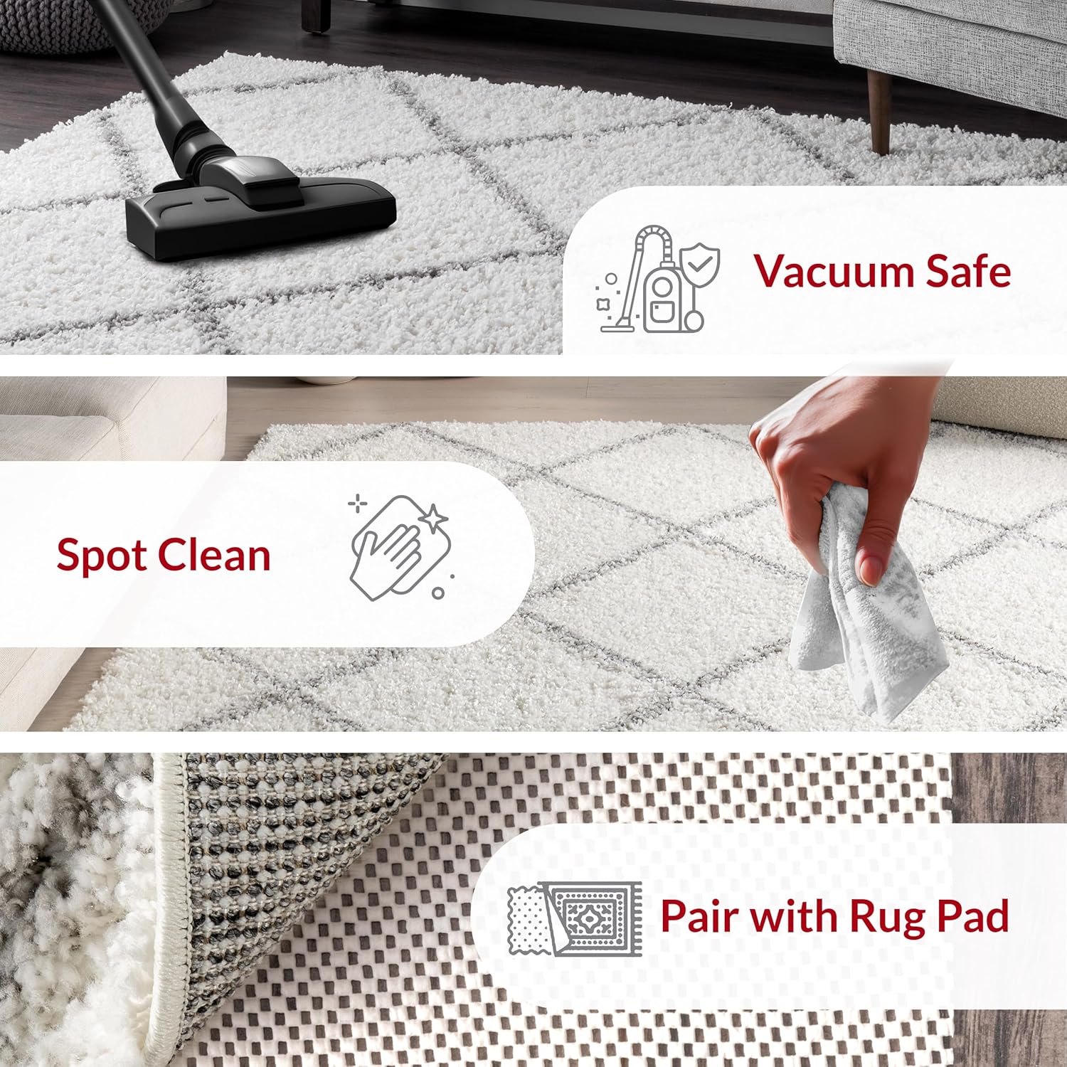- Ultra Soft Plush Shag Rug: The high pile of this area rug strikes a perfect balance between style and the ultimate cozy feeling underfoot. Our rug is extremely soft to the touch while being easy to maintain in your living room or bedroom.
