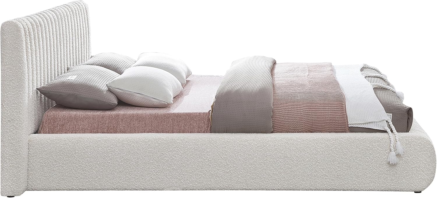 Meridian Furniture NashCream-F Nash Collection Modern | Contemporary Boucle Fabric Upholstered Full Bed with Rich Cream Boucle Fabric and Deep Channel Tufting, 68" W x 86" D x 38" H, Cream, Full