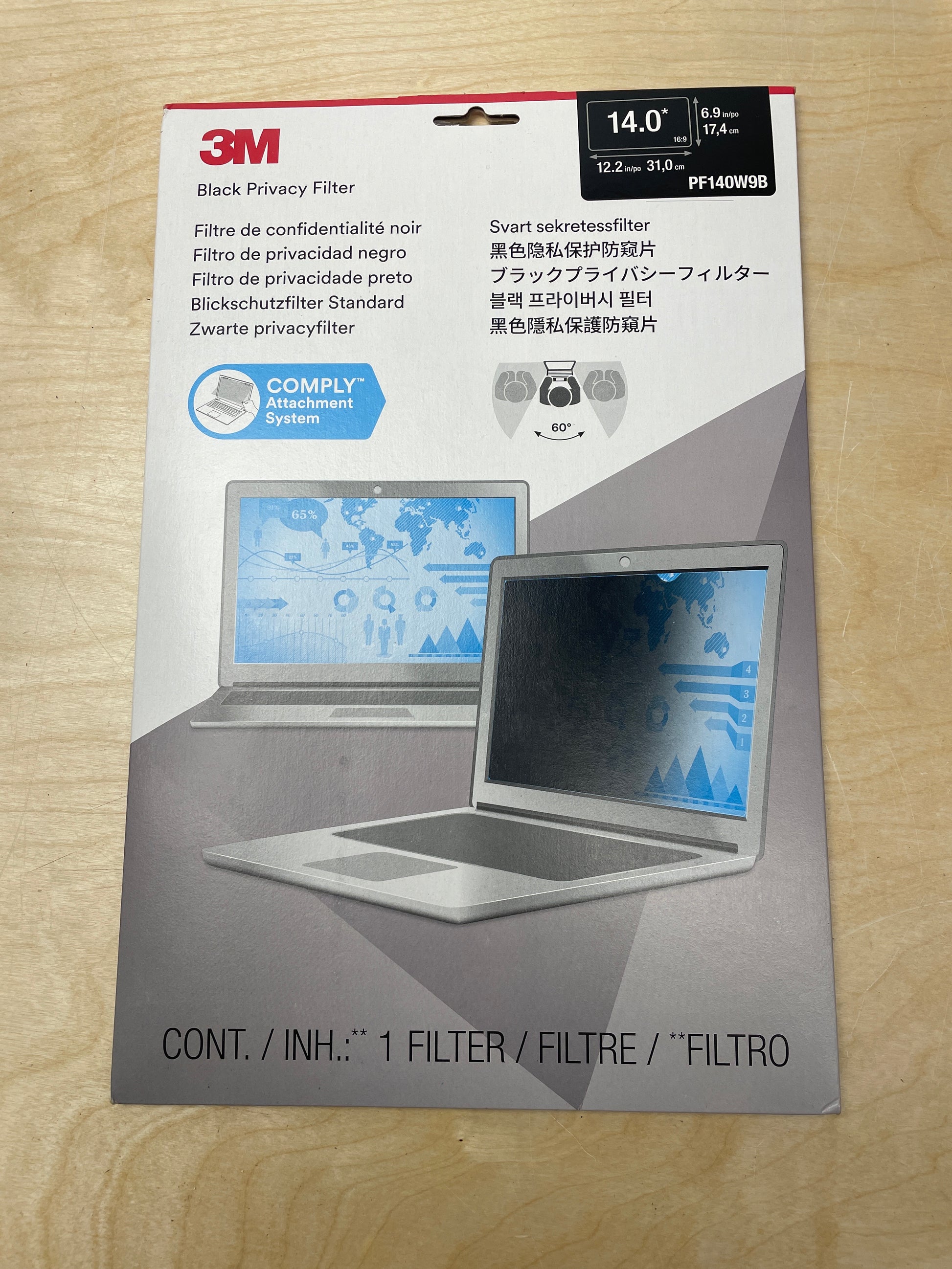 3M Privacy Filter with 3M™ COMPLY™ Flip Attach for Laptops, 14" Full Screen, 16:9 Aspect Ratio, Reduces Blue Light, Anti-Glare - Retail $40