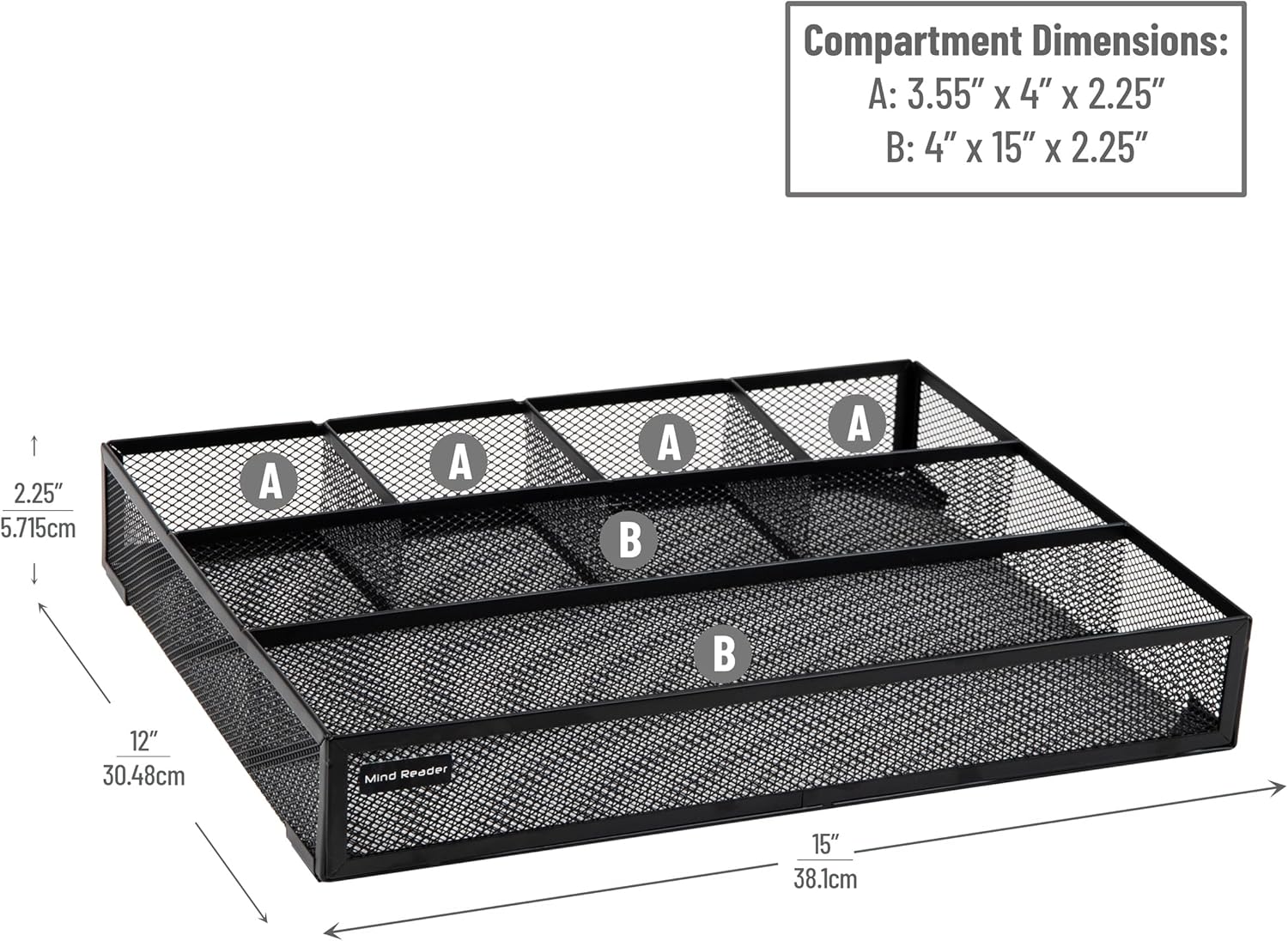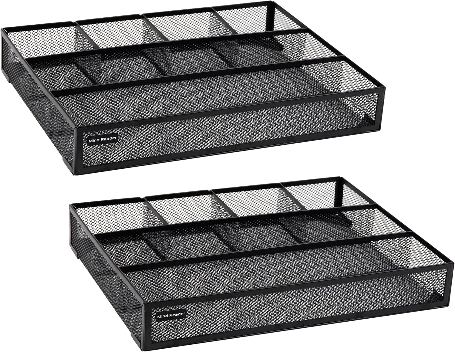Mind Reader Drawer Organizer, Desk Org, Utensil Organizer, Office, Kitchen, Metal Mesh, 15"L x 12"W x 2.25"H, Set of 2, Black