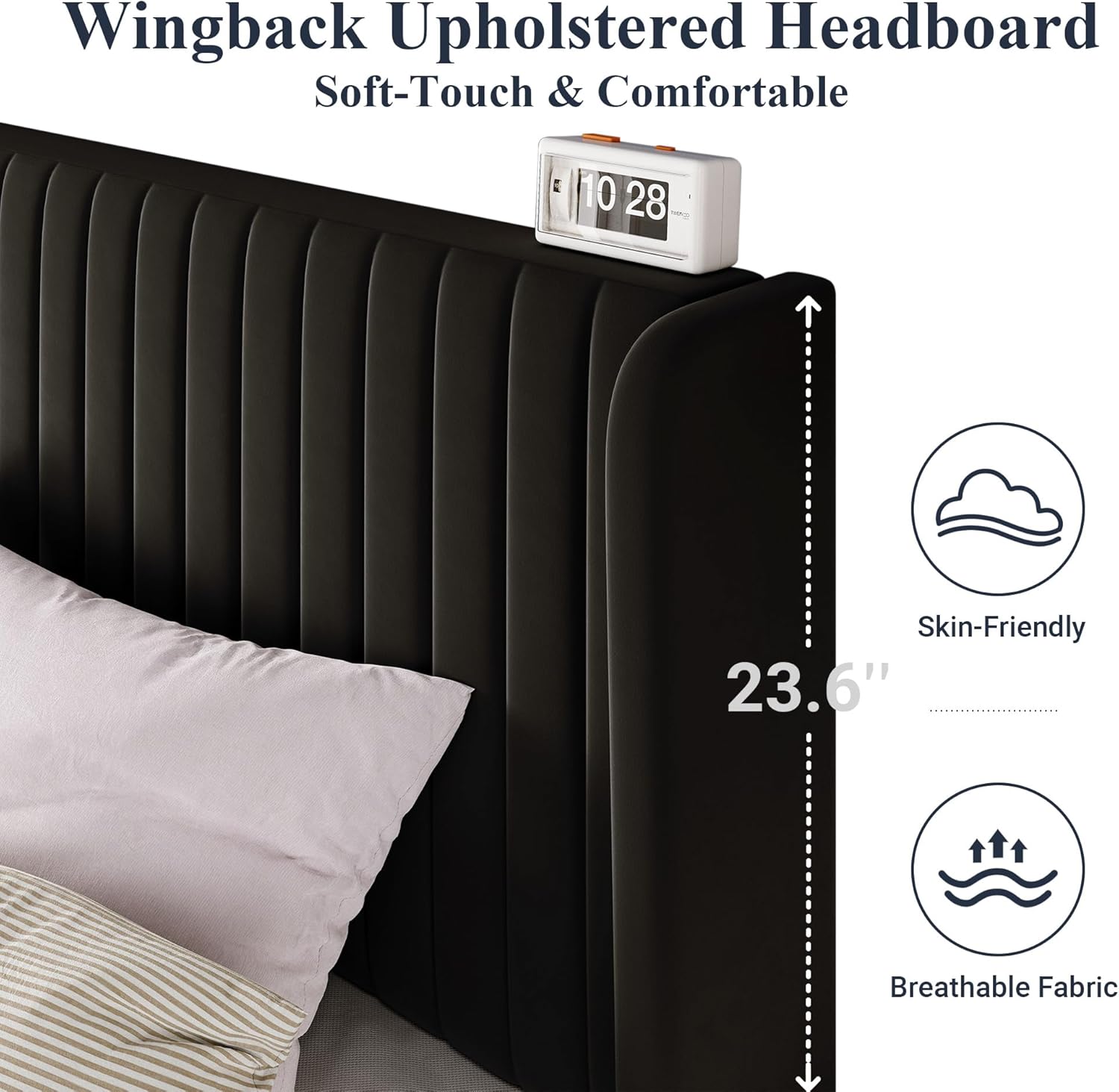 - Comfortable and Elegant: Designed in a modern wingback headboard, smooth velvet, and soft sponge wrap the entire bed frame, which will add sophisticated style to any bedroom