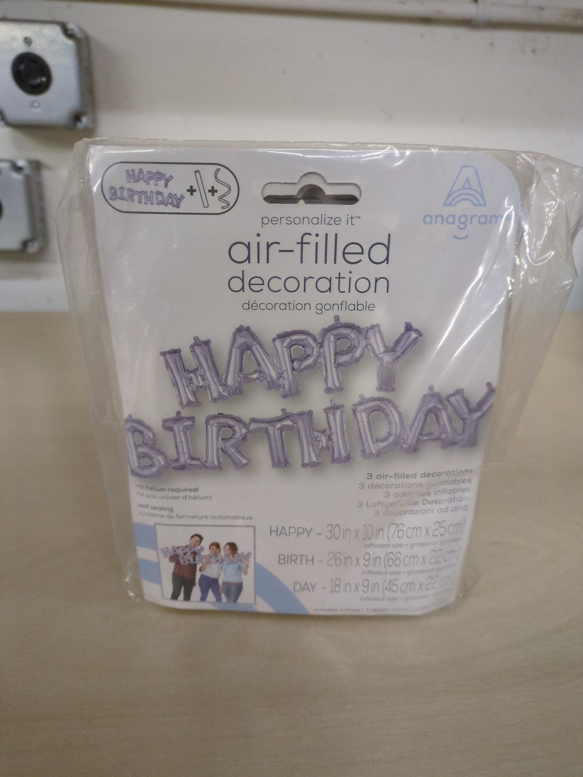 This Block Phrase: "Happy Birthday" - Silver (Air-Fill Only) foil mylar balloon is the perfect decoration piece for your birthday themed party! Made by Anagram, this letter shaped balloon is a great decor piece to hang from the ceiling, attach to the wall or build into your birthday themed decor. This balloon includes a self-sealing valve, preventing the air from escaping after it's inflated. Balloon does not float and must be inflated with air. Balloon arrives uninflated.