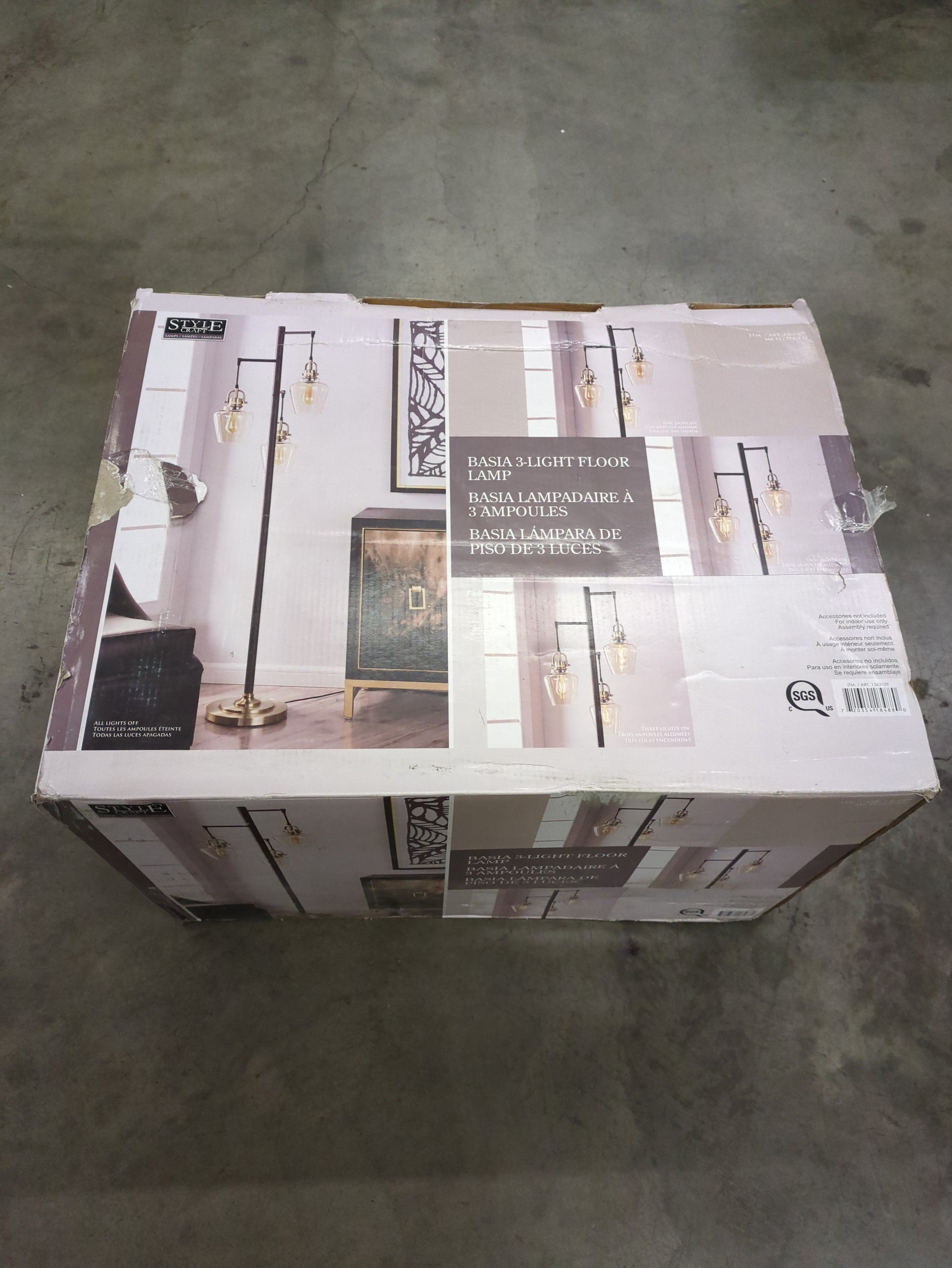 - Basia 3-Light Floor Lamp with Antique Brass accents