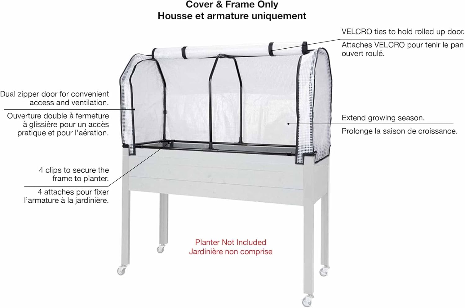- Includes 1 steel frame and 2 interchangeable covers: 1 polyethylene greenhouse cover and 1 mesh bug cover. Planter NOT included.; Provide the perfect microclimate for your plants. The greenhouse cover allows you to start planting earlier in spring and extend the growing season later into fall to increase your harvest. The bug cover protects plants from insects, pests, birds and other animals.; The steel frame assembles in minutes and attaches to your planter to ensure it stays put. Assembled cover dimensions: 21 W x 47 L x 24 H.; Covers attach to frame with Velcro tabs. A dual zipper door makes for easy access to attend or harvest your plants. Velcro ties to hold up rolled doors.; Fits the following CedarCraft planter models: SW2147 series, ELV2147 series, ESB4721 series; is_assembly_required; True