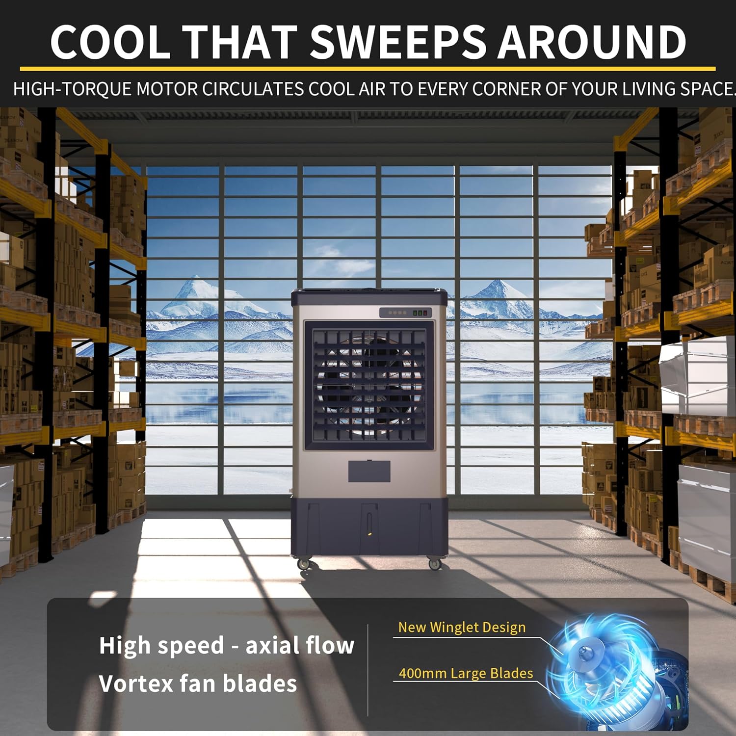 - Private and Business Use: The large swamp cooler is a good choice for hot summer days. You can still feel the cool air when you want to party on the outdoor patio! Of course the garage air conditioner will bring customers a comfortable consumer experience