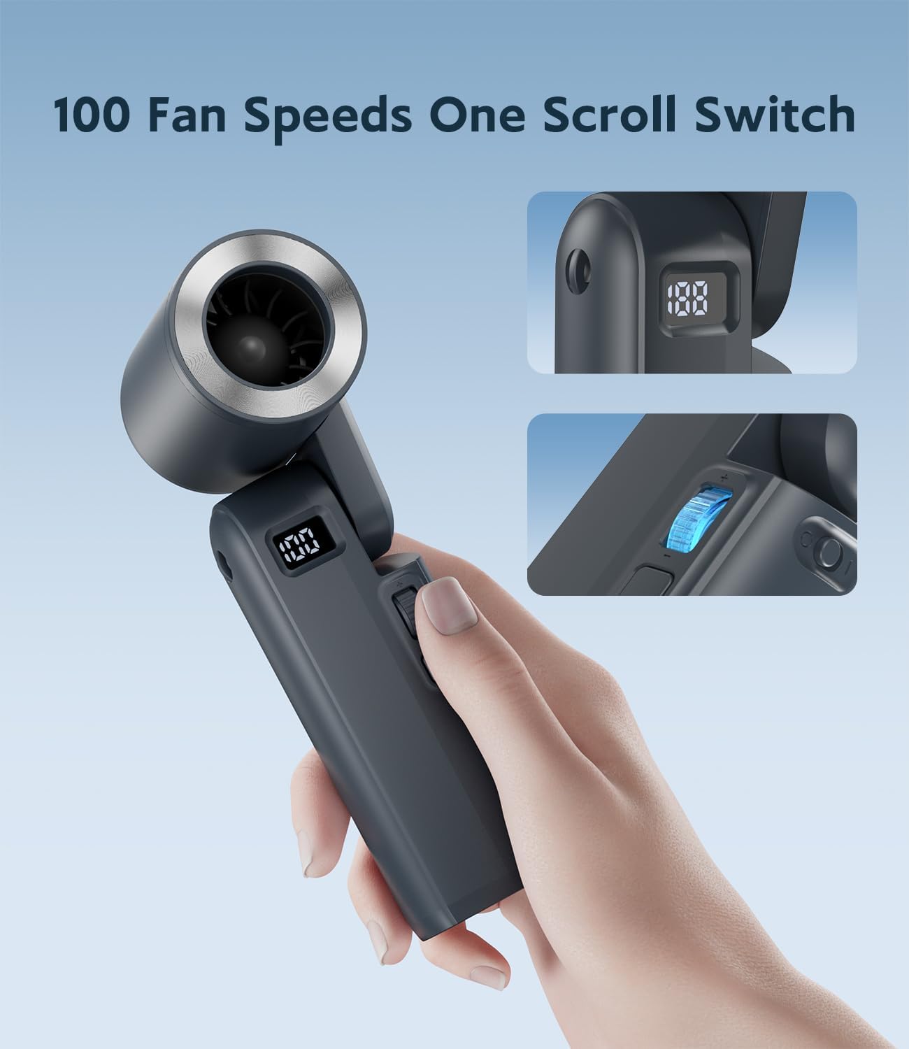 Portable Handheld Fan, 4000mAh Battery Operated Rechargeable Personal Fan, LED Display, 0-100 High Speed, Lightweight, Foldable Design, Hand/Desk/Neck 3 in 1 Cooling for Travel, Women, Man-Blue
