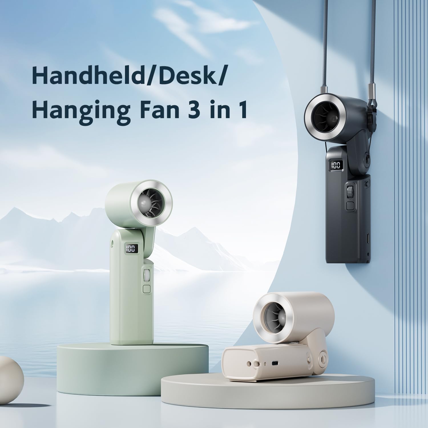 - Handheld/Desk/Neck Fan 3 in 1: With a 180°foldable design, this personal fan can be placed on the desk, allowing you to keep cool while you are working, studying or doing makeup. The table fan also comes with an anti-lost lanyard, you can hang it around your neck as a necklace fan