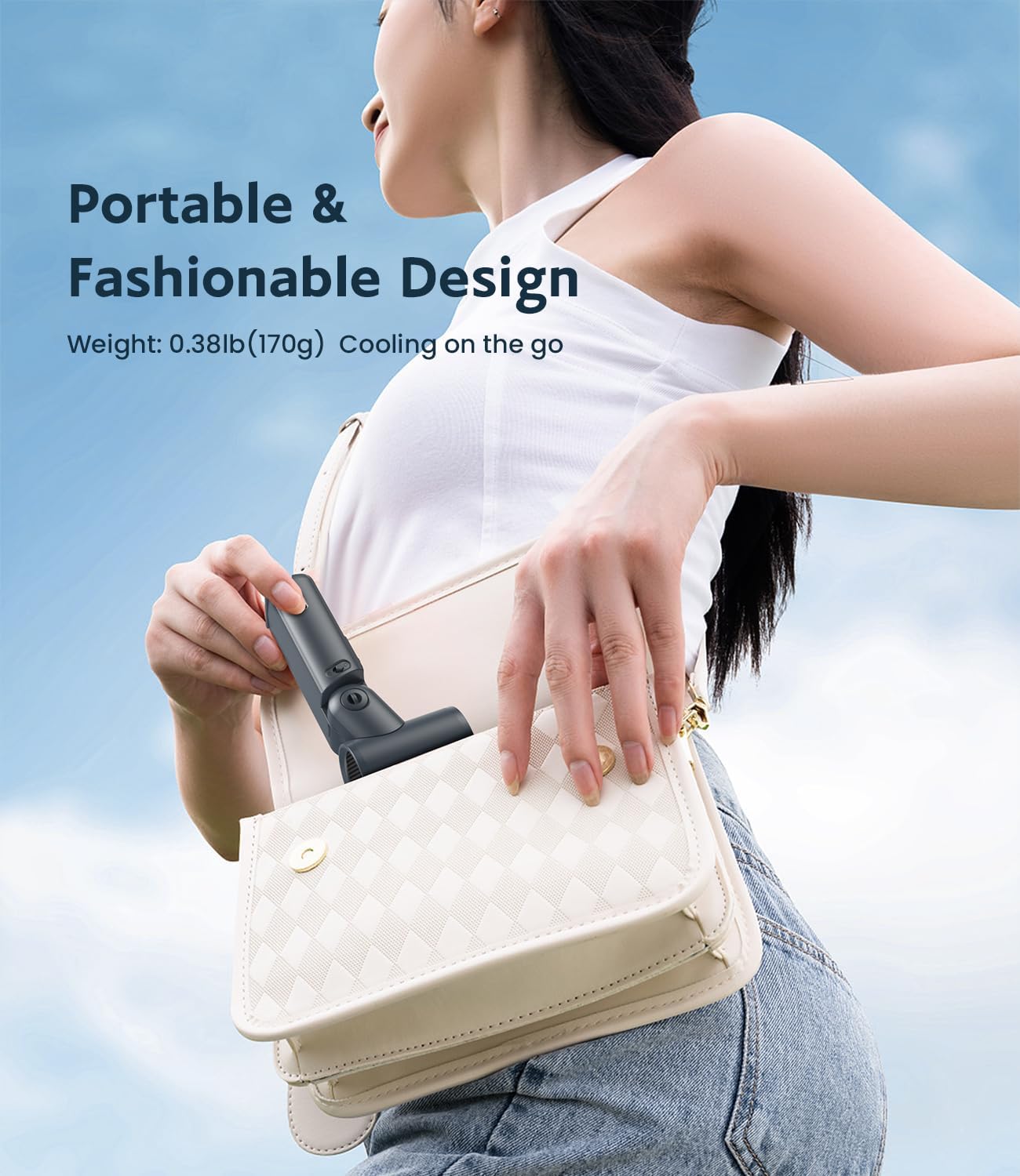 - Portable and Gifts: The small fan size is 5.9*2.4*1.7inch and ultra-light weight of 0.38lb allow you to easily put it in your pockert or bag. It’s a cooling companion for travel and outdoor sports, and quite suitable as a birthday gift or anniversary gift for women, men, moms, children and friends.