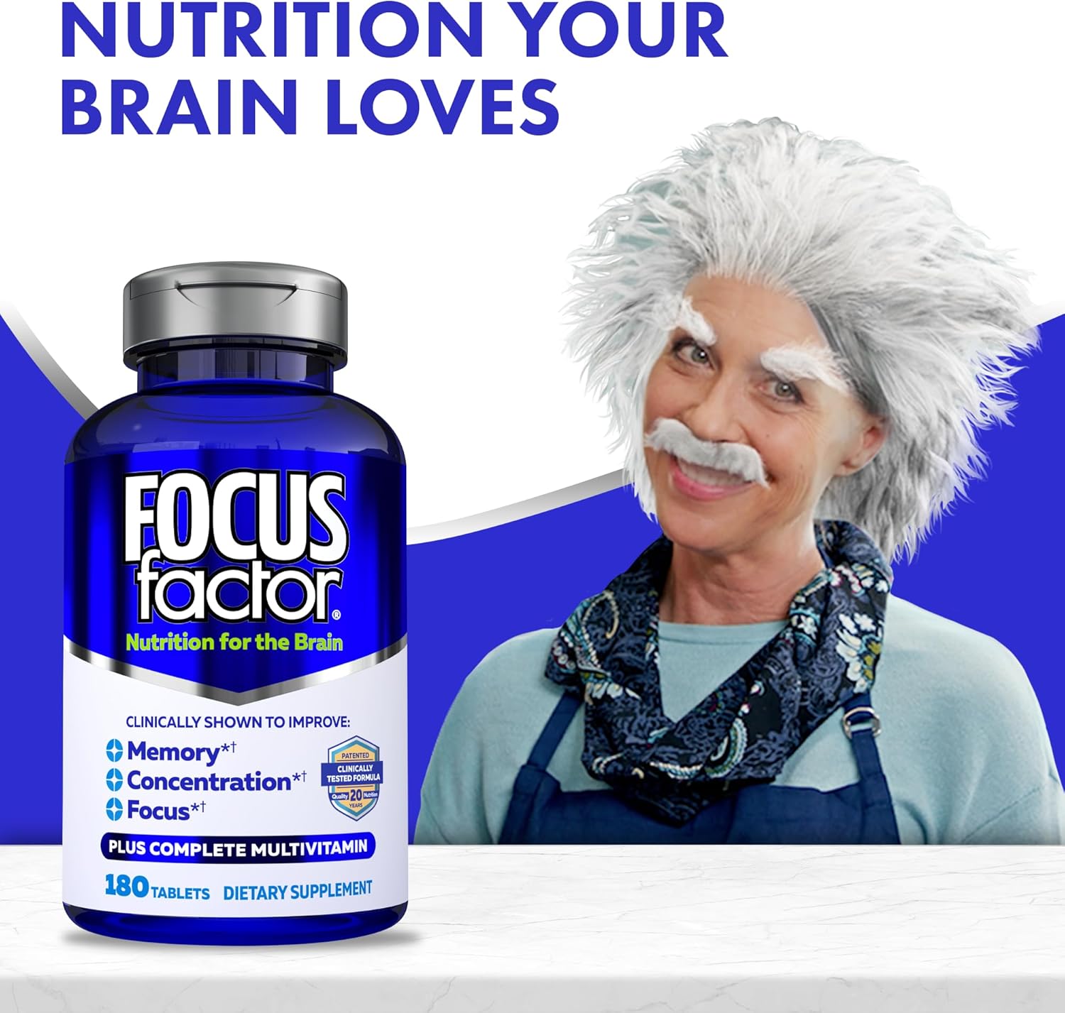 Focus Factor Brain Supplement Multivitamin Improve Memory and Clarity Boost Concentration Neuro Energy Learning Reasoning for Men and Women 180 Tablets