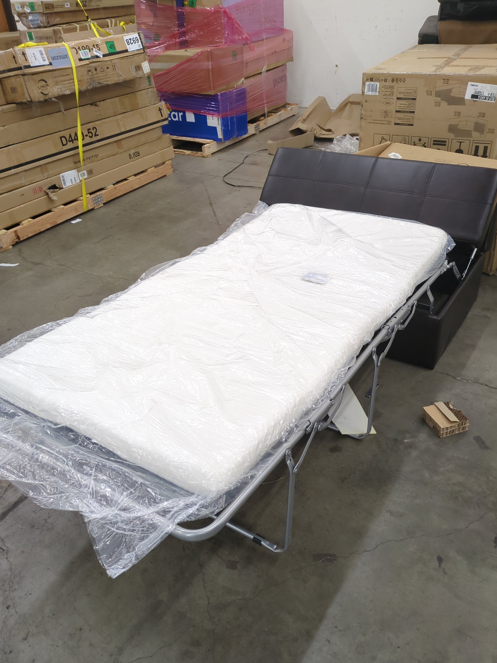 This sleeper ottoman will surprise you with versatility, style and comfort. Covered in a rich brown “leather-like” fabric that is durable and easy to clean. When opened, you will find the sleeper mattress is made of soft, yet supportive, memory foam. The premium sleeper mechanism easily adjusts the headrest from a lay-flat sleeping position into a slightly raised, lounging position. The casters provide quick and easy mobility, but also lock to maintain stability. This Sleeper Ottoman is the perfect solution to additional sleeping arrangements with a small footprint.