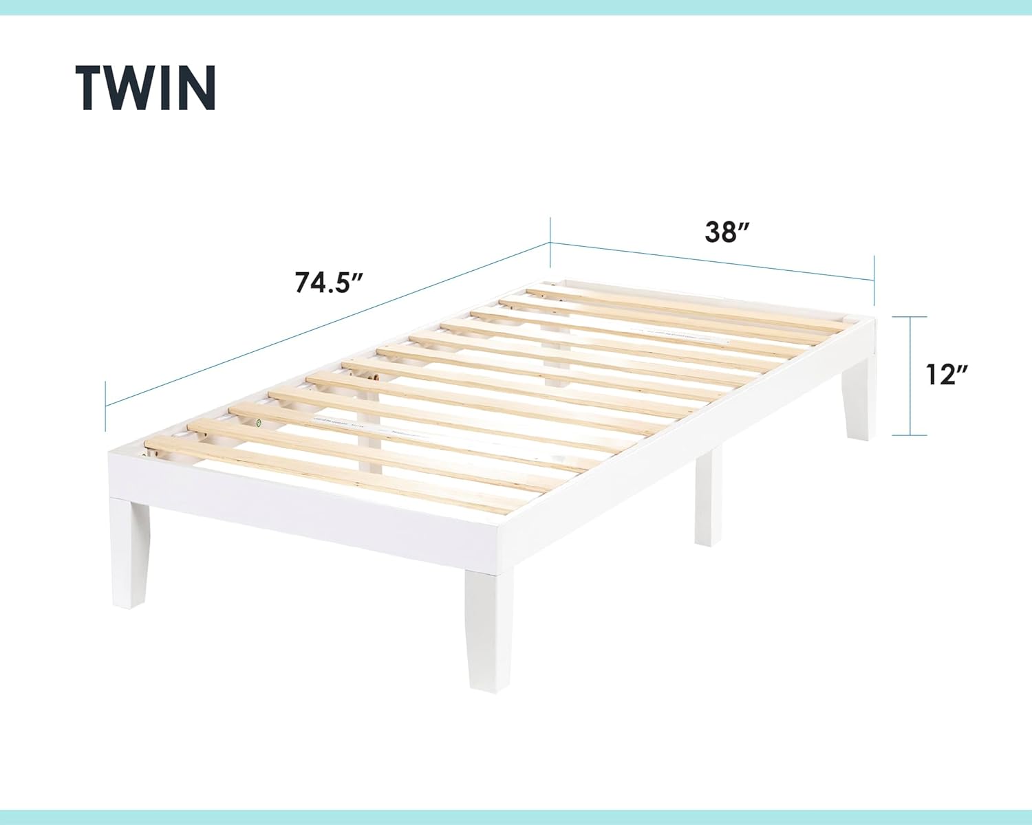 NEW - Mellow Naturalista Classic 12 Inch Solid Wood Platform Bed with Wooden Slats, Twin, White - Retail $142