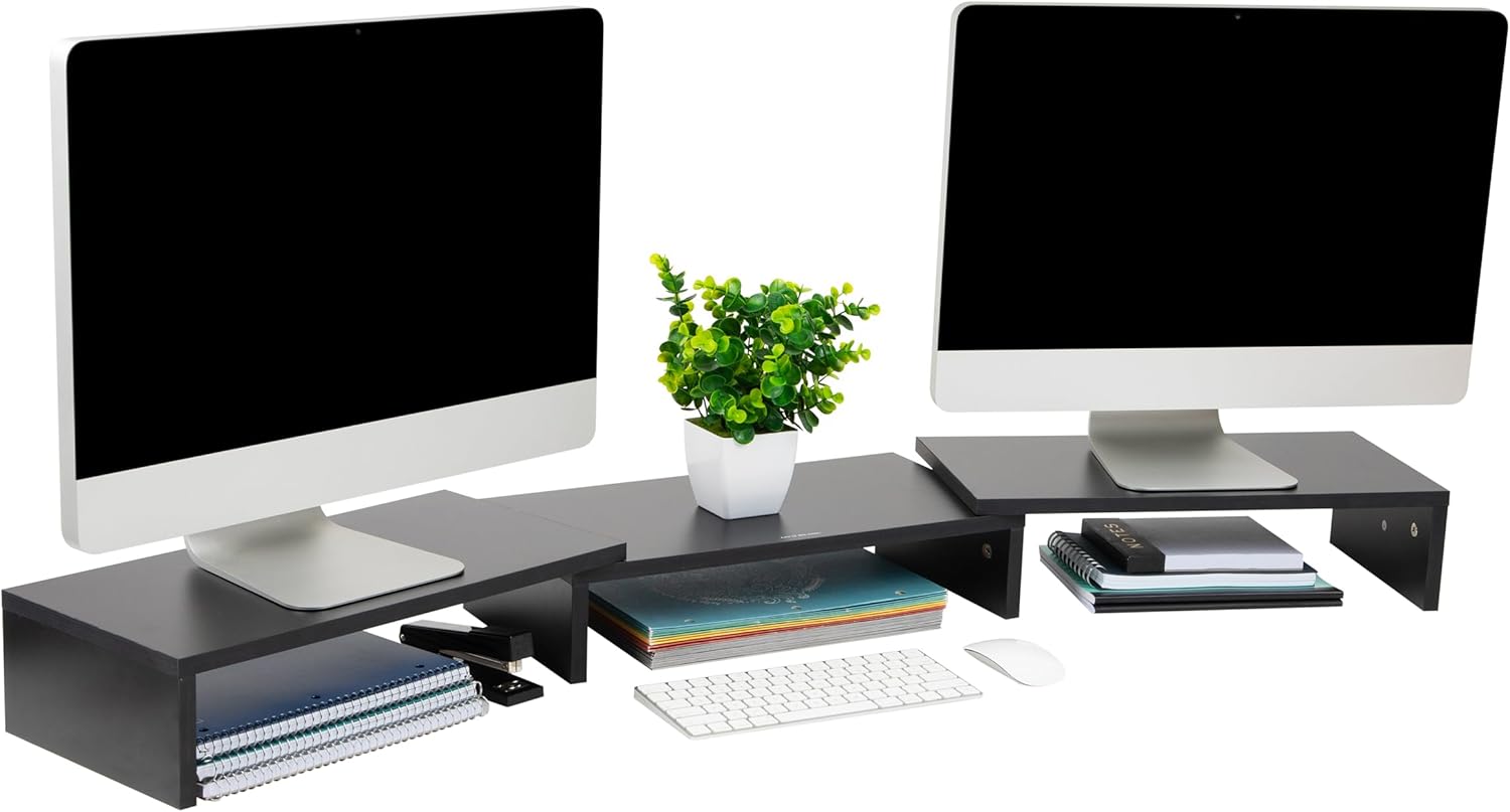 Mind Reader Dual Monitor Stand, Desktop Organizer, Laptop Riser, Office, MDF, 51.25" L x 9.25" W x 4.75" H, Black
