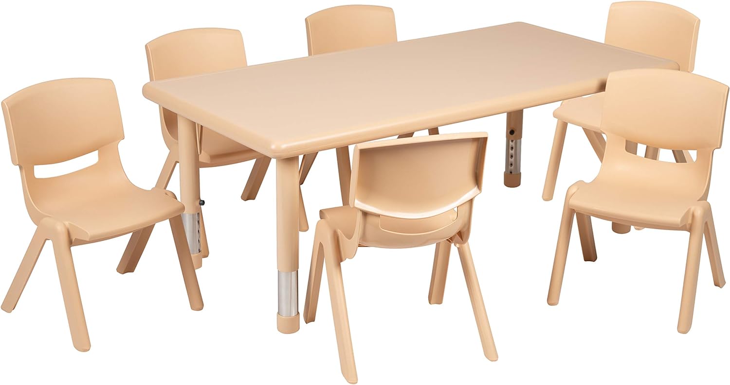- Flash Furniture 24"w X 48"l Rectangular Natural Plastic Height Adjustable Activity Table Set With 6 Chairs