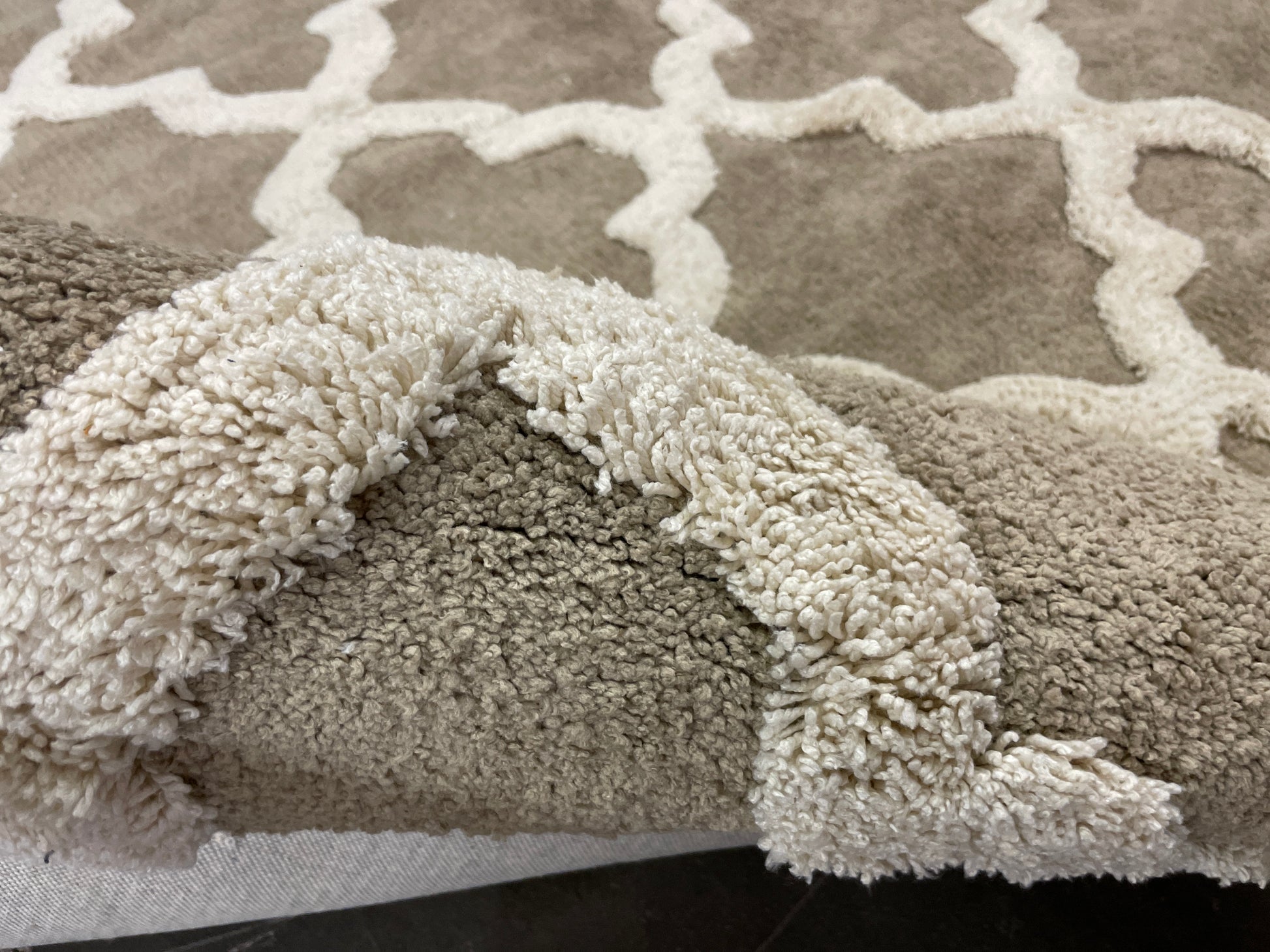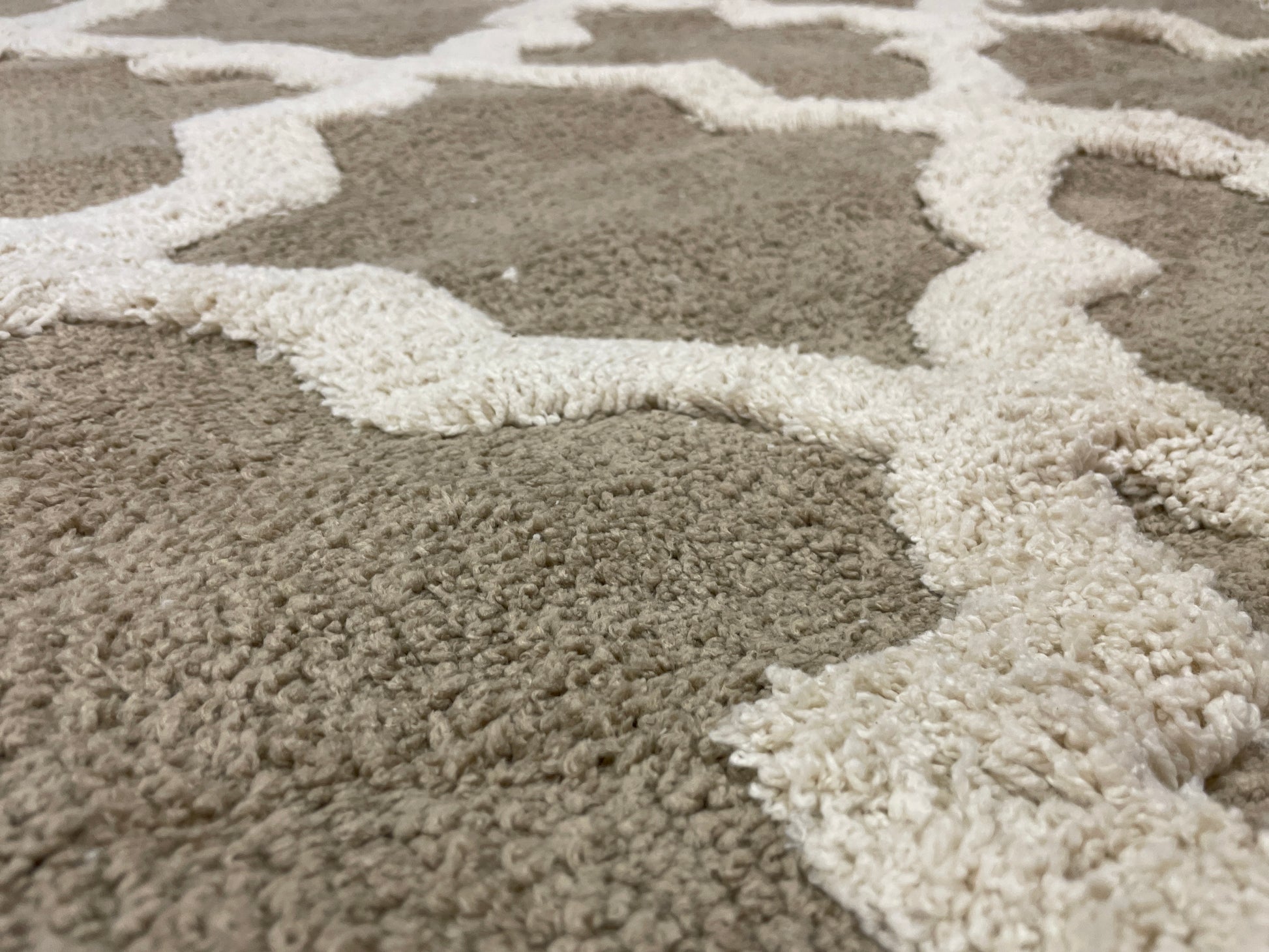 8' x 10' 100% Polyesterpile rug. This is a high-pile rug that feels amazing underfoot. The cross pattern is raised above the rest of the rug.