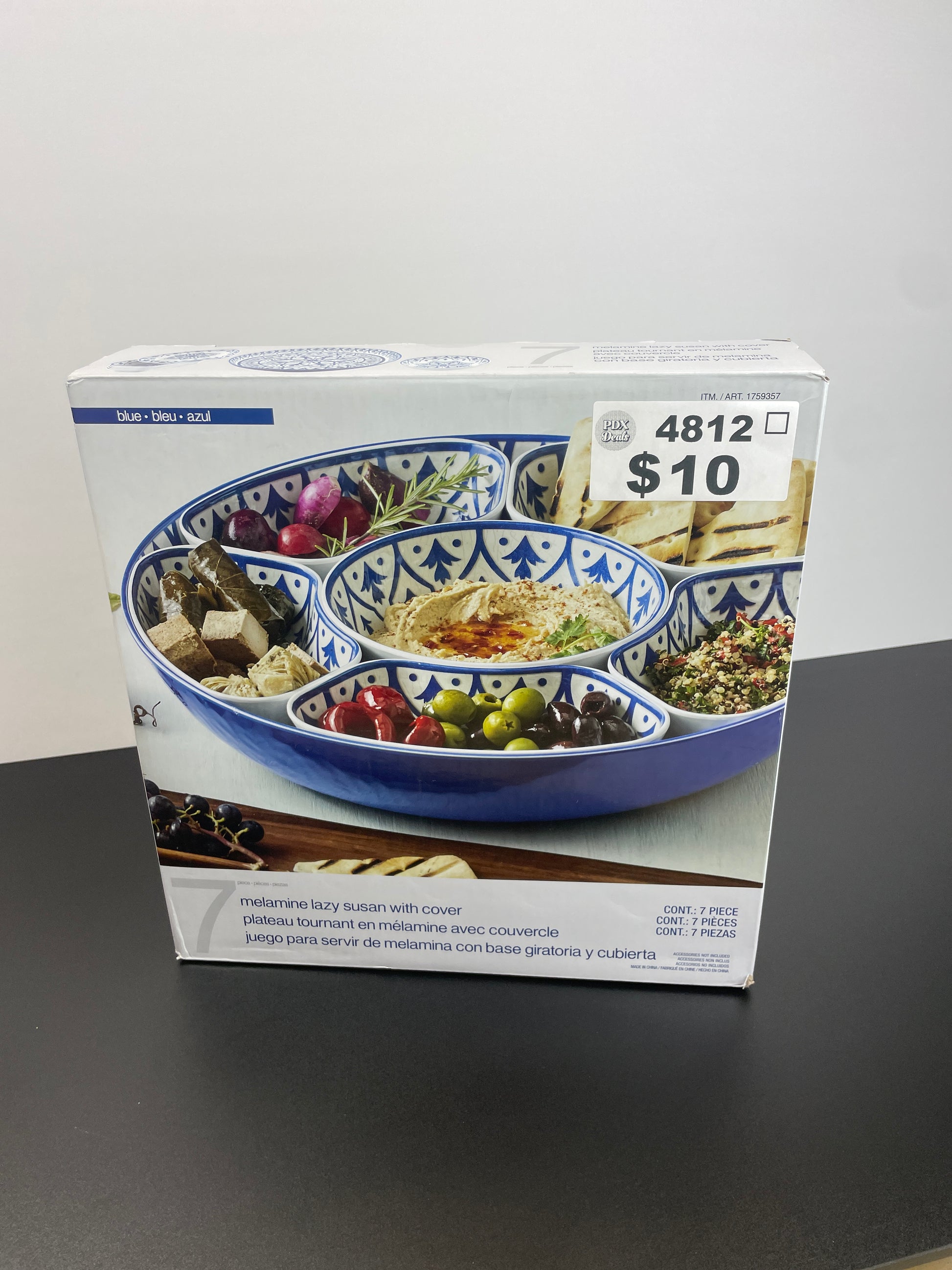 Melamine Blue Lazy Susan with Cover, 7-Piece Set - Retail $19
