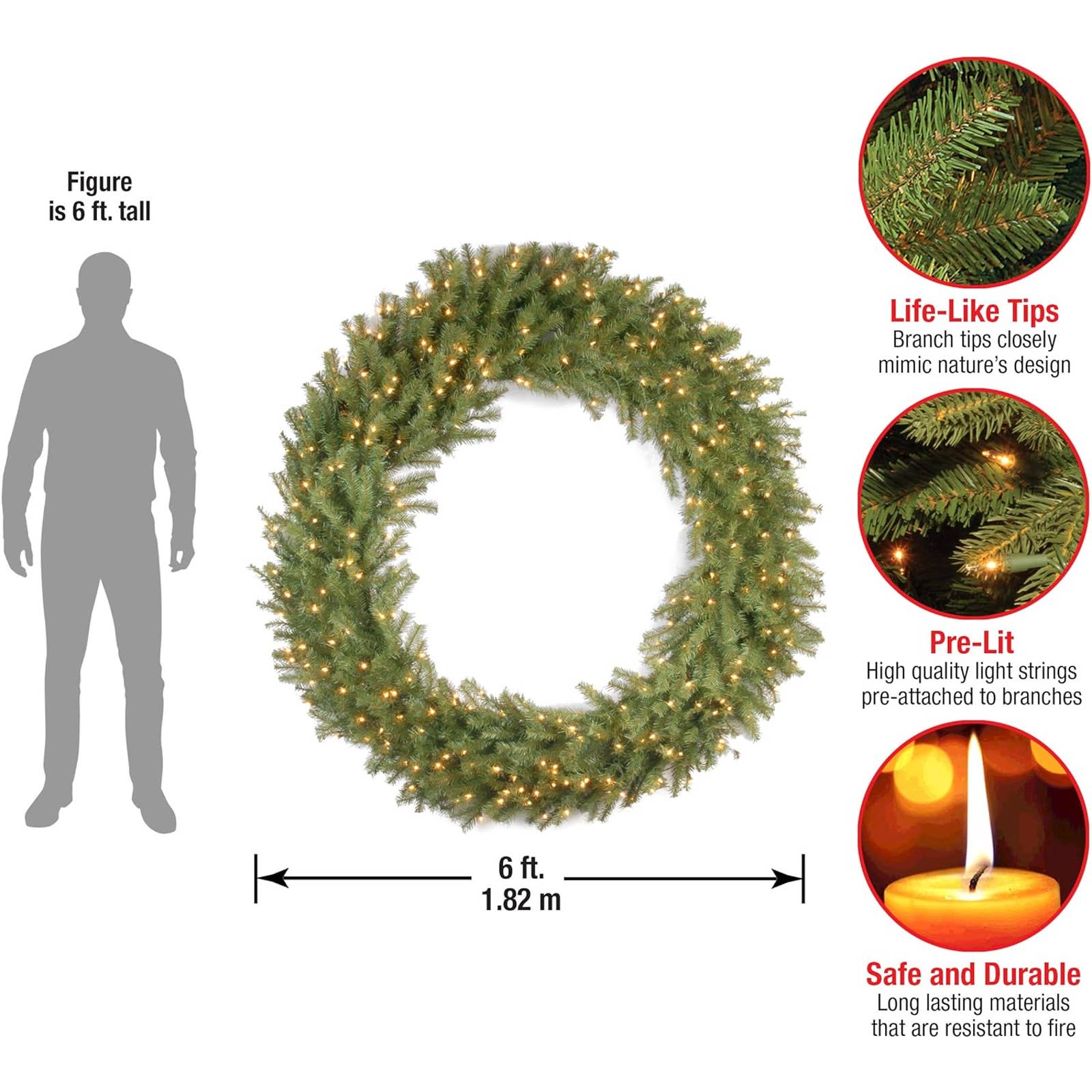 * Designed with a Norwood Fir branch base, this pre-lit artificial Christmas wreath is 60 inches wide.