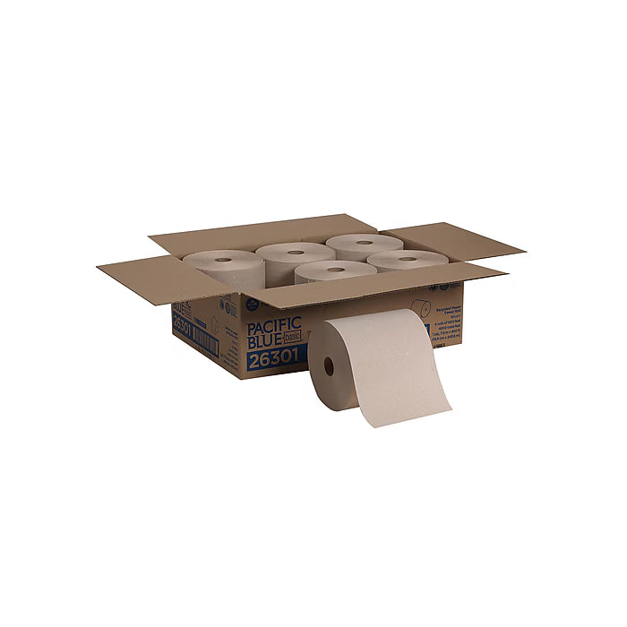 Pacific Blue Basic Recycled Hardwound Paper Towels, 1-ply, 800 ft./Roll, 6 Rolls/Carton (26301)