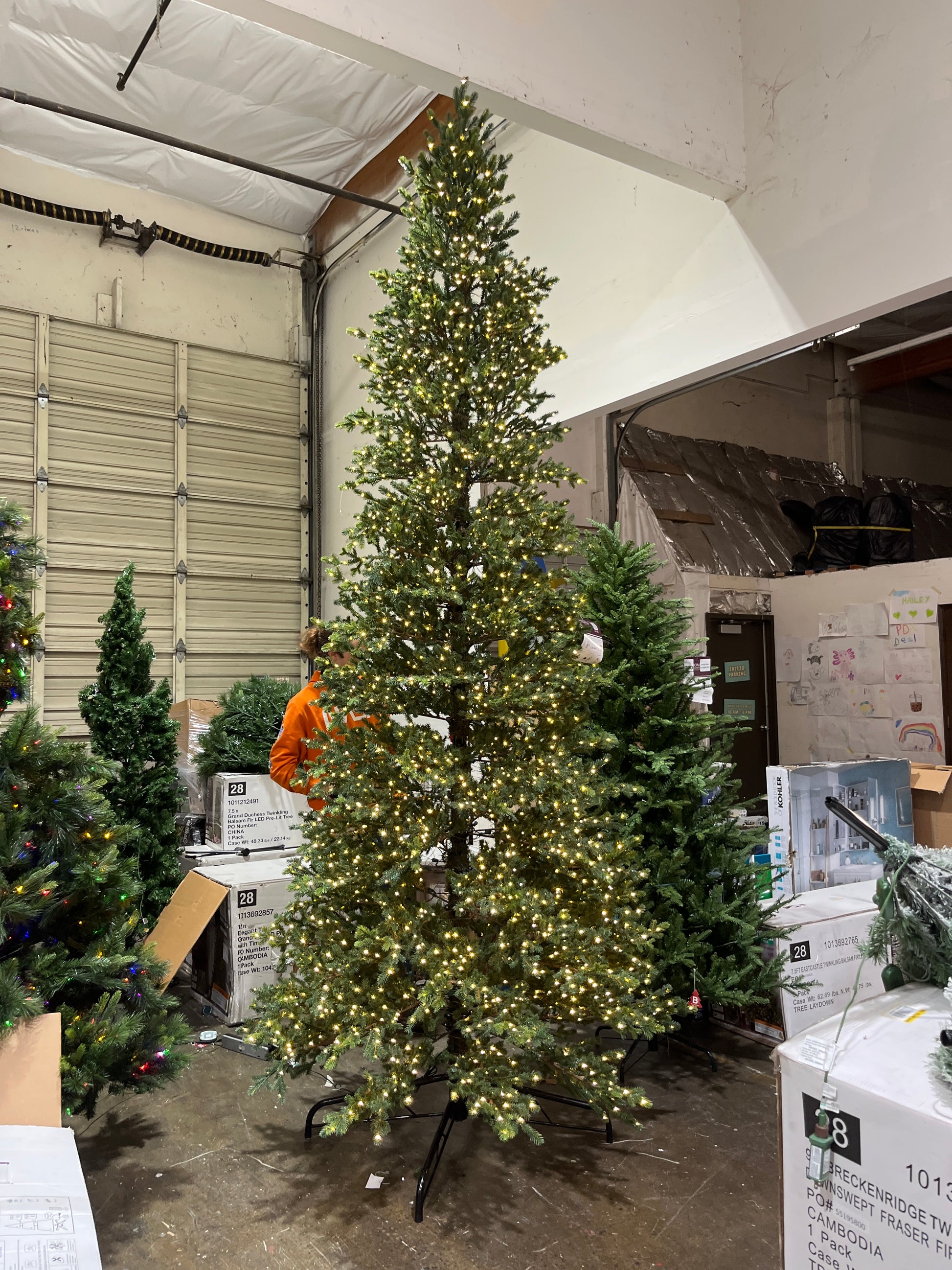 - 12 ft. Elegant Pre-Lit tree has 12,887 realistic branch tips