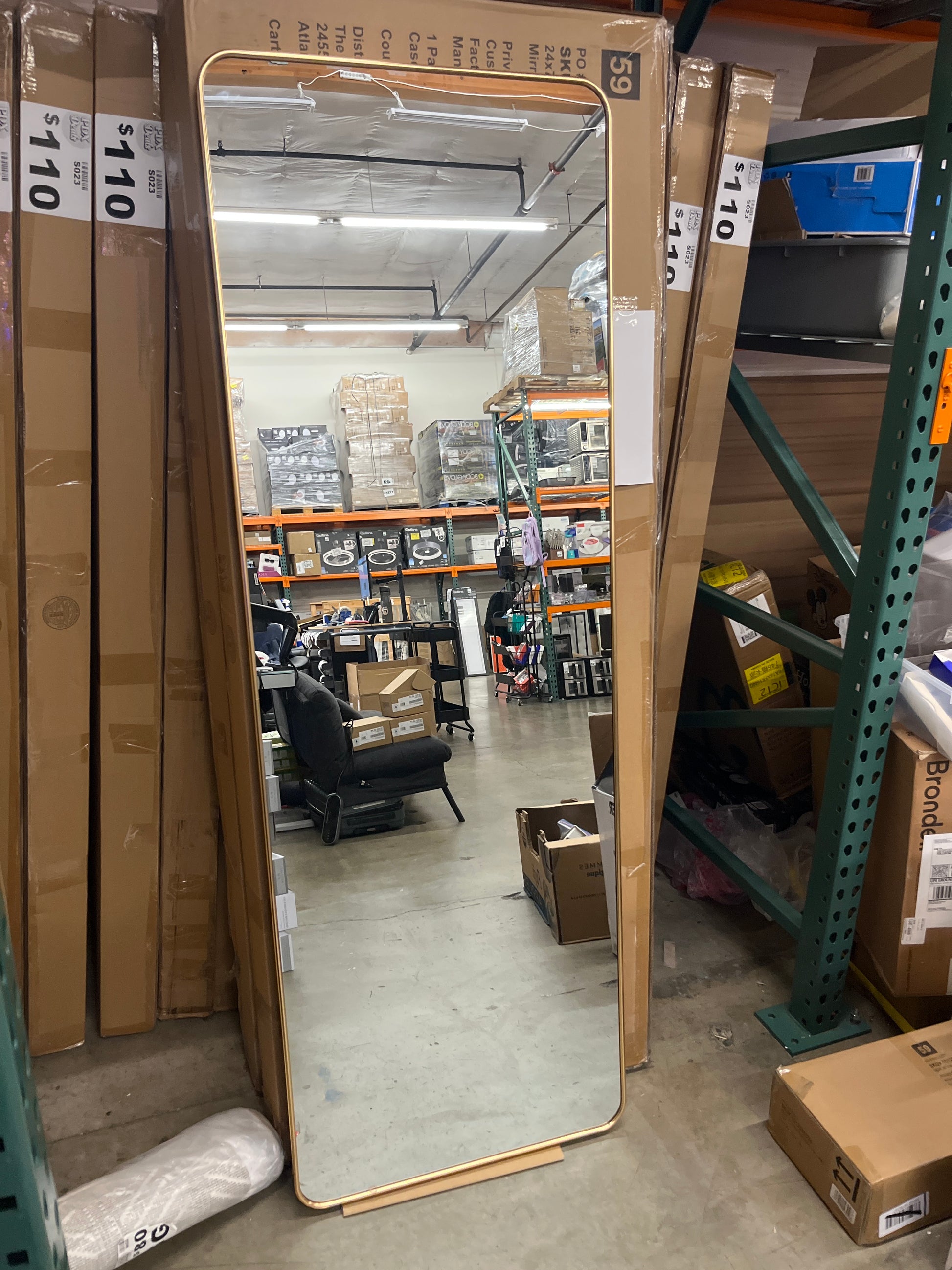 - Gold framed full length mirror adds dimension to your space