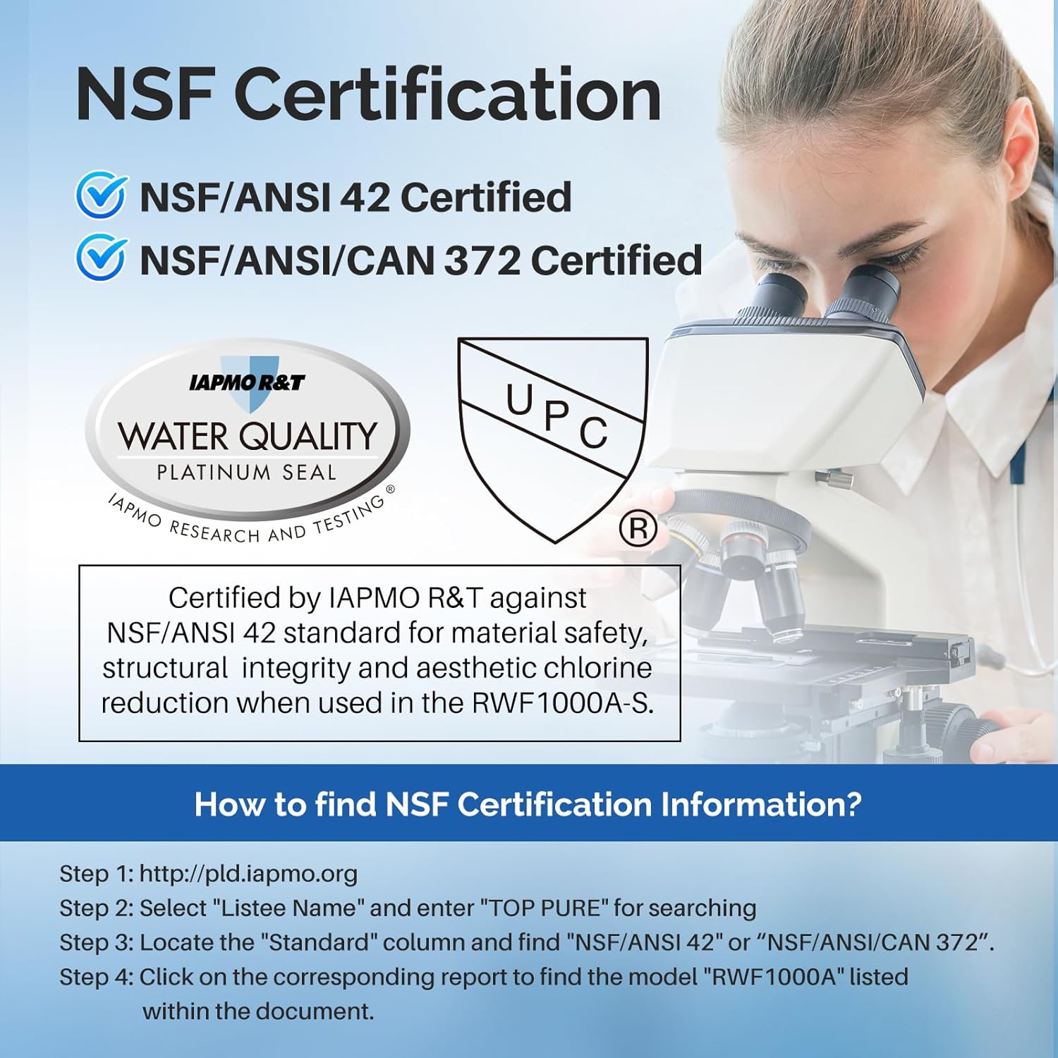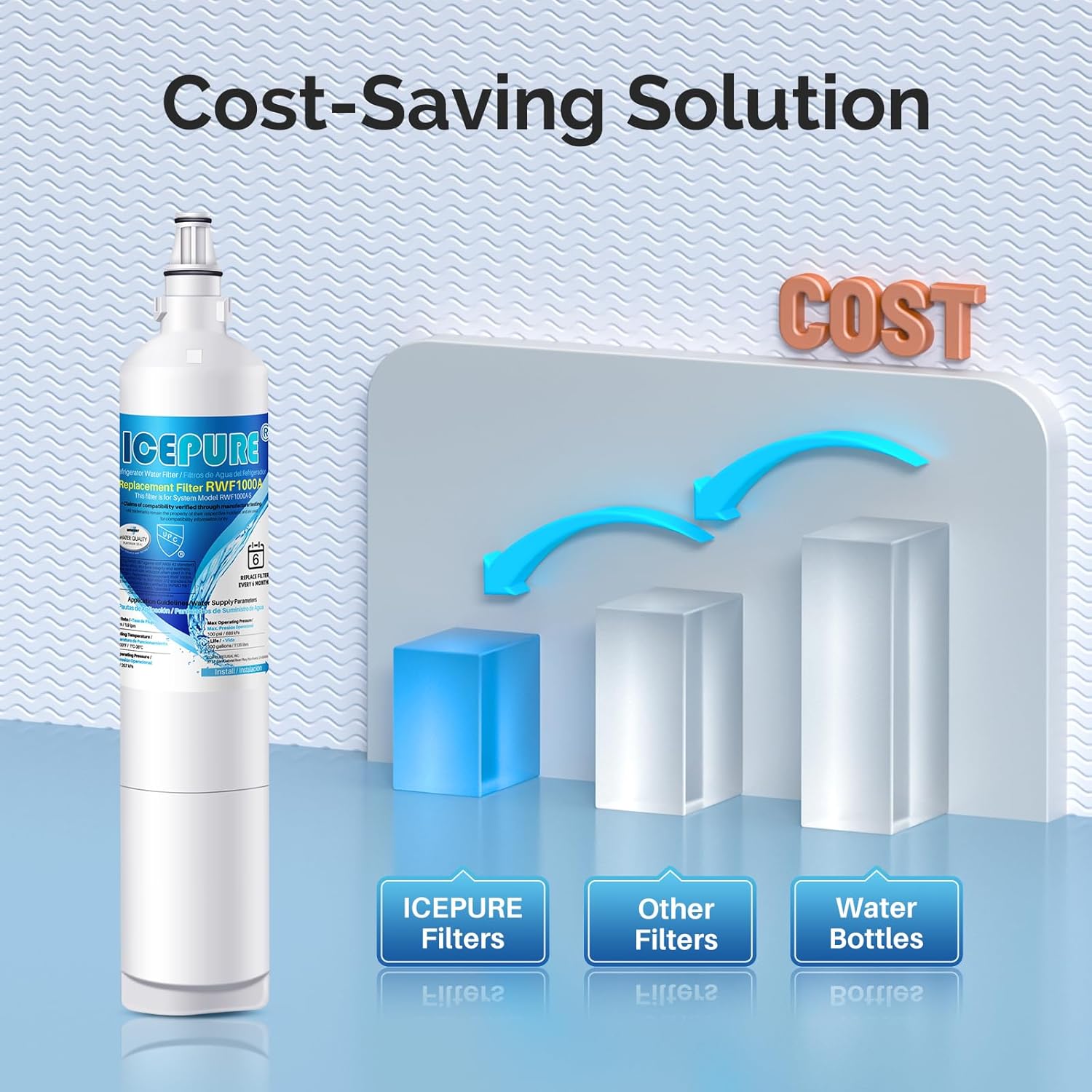 - [Certified Quality You Can Trust] ICEPURE RWF1000A refrigerator water filter is certified by NSF/ANSI 42 & 372 (Lead-Free), Ensuring safe, clean drinking water. Applicable to Home, Kitchen, Office, Vacation home, Apartment, Residential House.