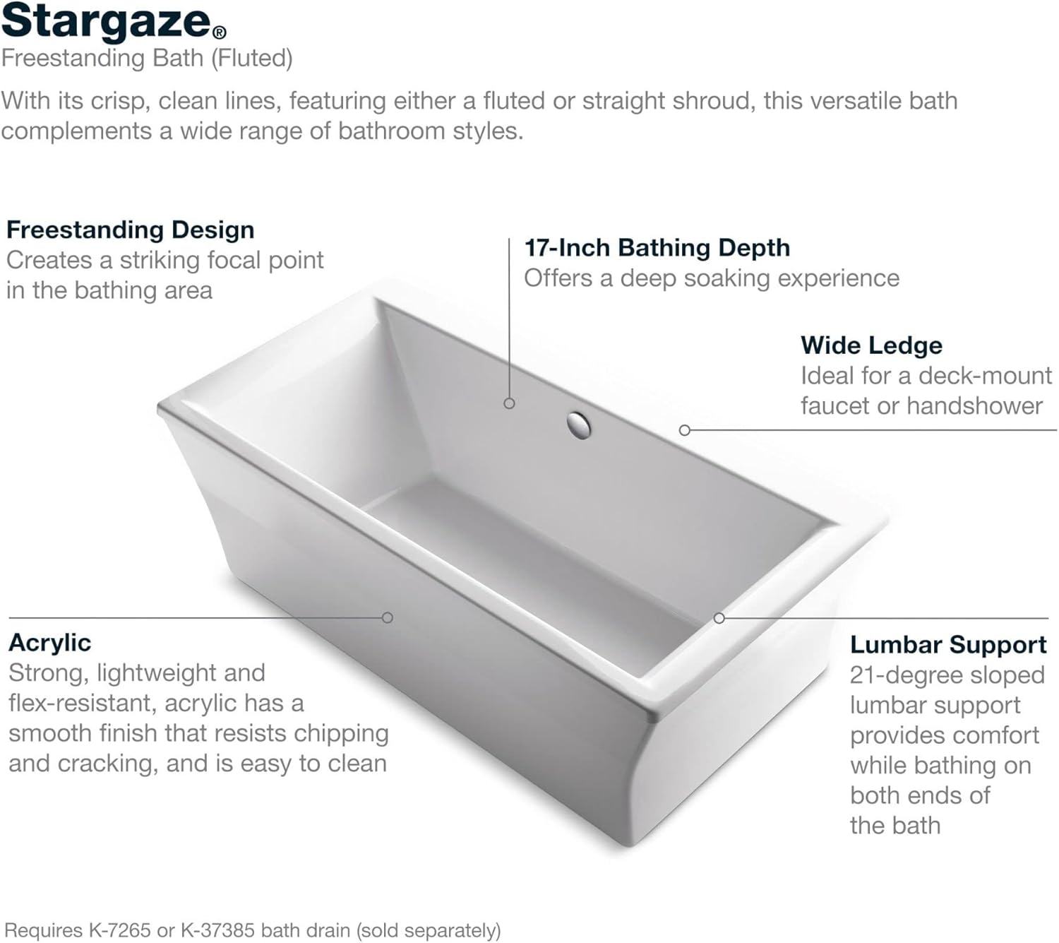 NEW - Kohler 6367-0 Stargaze 72-Inch X 36-Inch Freestanding Bath with Fluted Shroud and Center Drain