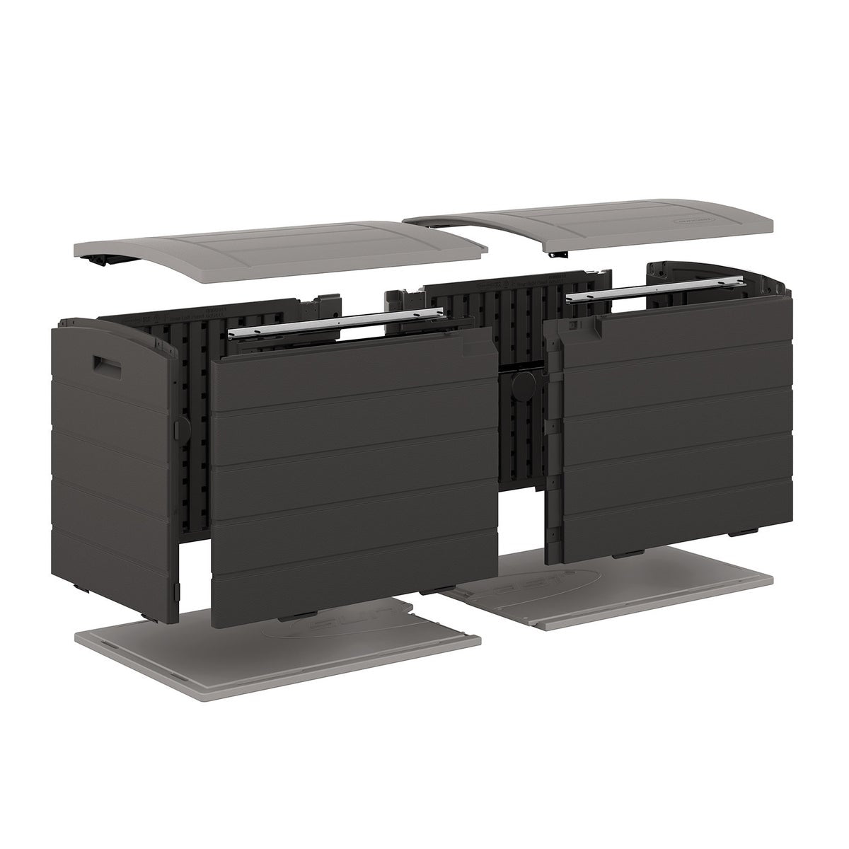 - Suncast 120 Gallon Split Lid Extra Large Deck Box Multi-Wall Panels are Engineered for Strength & Durability