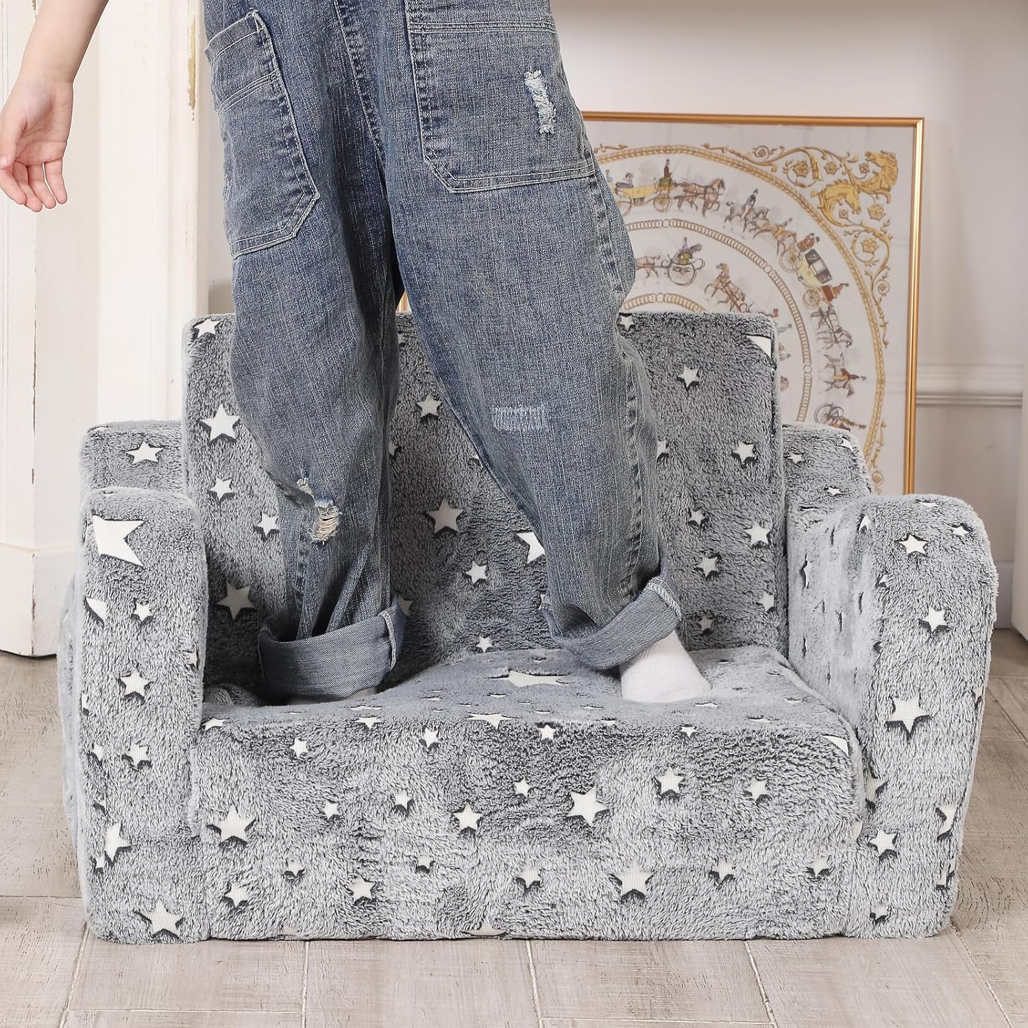 Star Glow in The Dark Toddler Couch, 2-in-1 Toddler Soft Couch Fold Out with Star Pillow, Convertible Sofa to Lounger for Girls and Boys, 1-Seat
